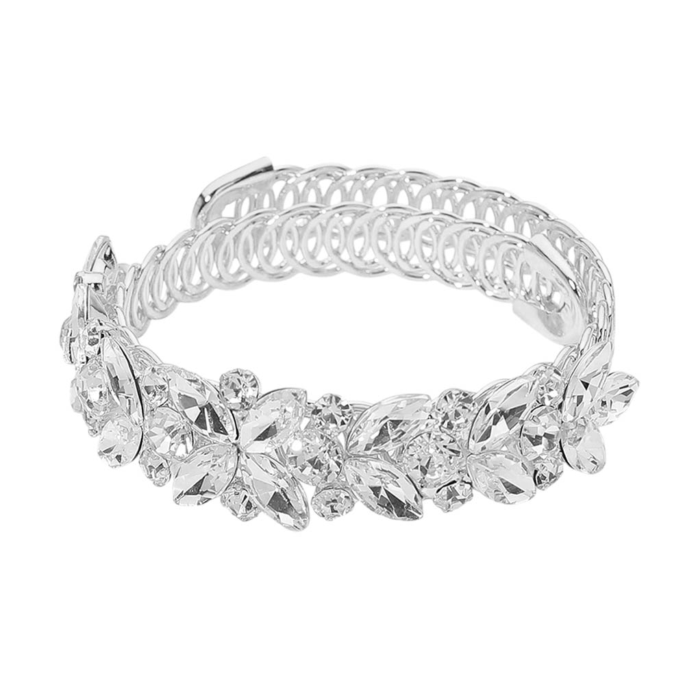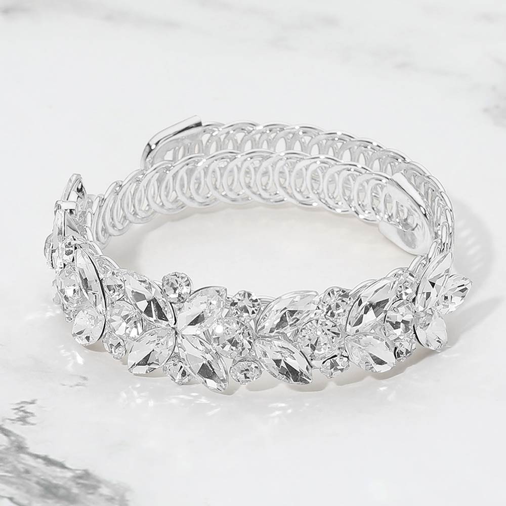 Floral Marquise Round Stone Cluster Adjustable Evening Bracelet Floral Marquise Round Stone Cluster Adjustable Evening Bracelet Floral Marquise Round Stone Cluster Adjustable Evening Bracelet