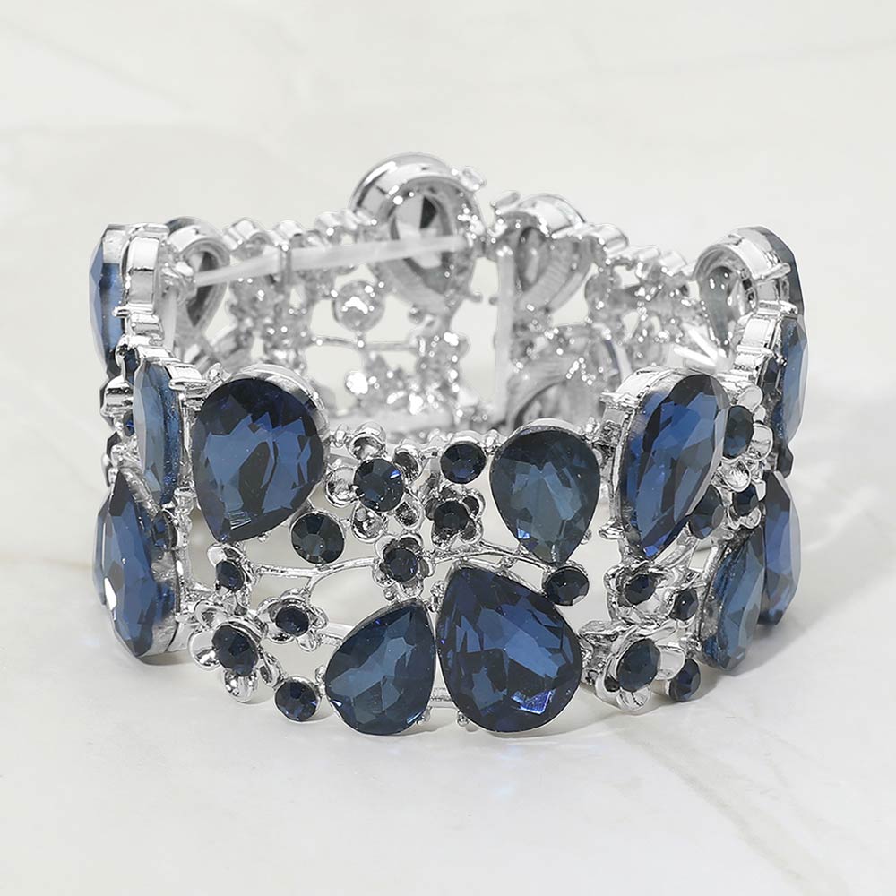 Glass Crystal Teardrop Floral Stretch Evening Bracelet