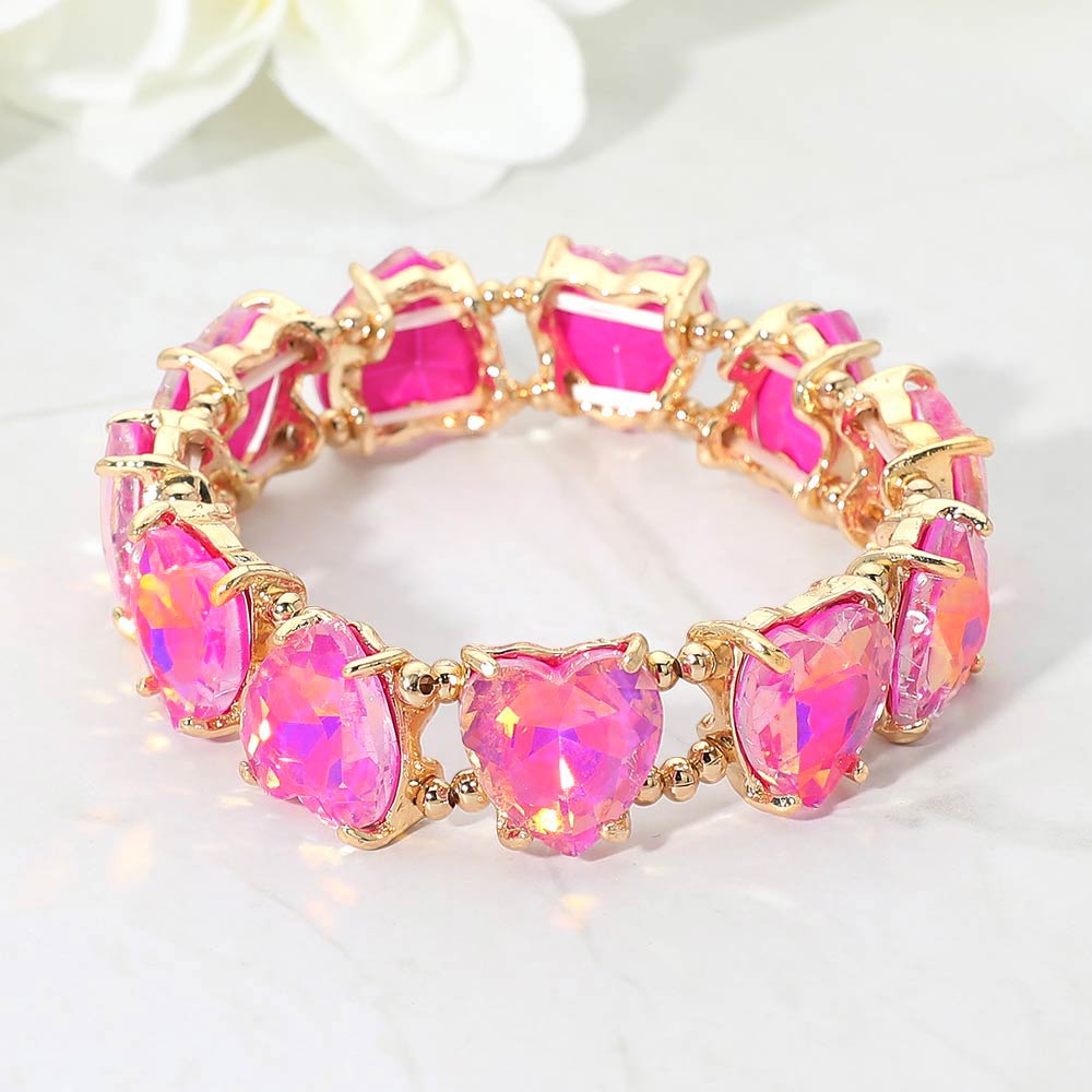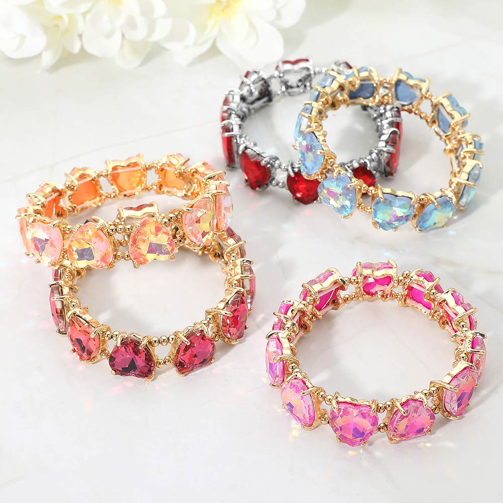 Heart Stone Cluster Beaded Stretch Evening Bracelet