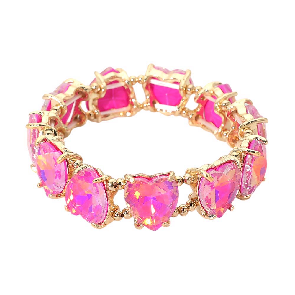 • This heart shape stretch bracelet features a continuous row of faceted heart accents that create eye-catching dimension and shine. Designed for comfortable slip-on wear, it delivers a bold yet romantic look that works for everyday styling, gifting moments, and statement jewelry collections across seasonal and special-occasion assortments.