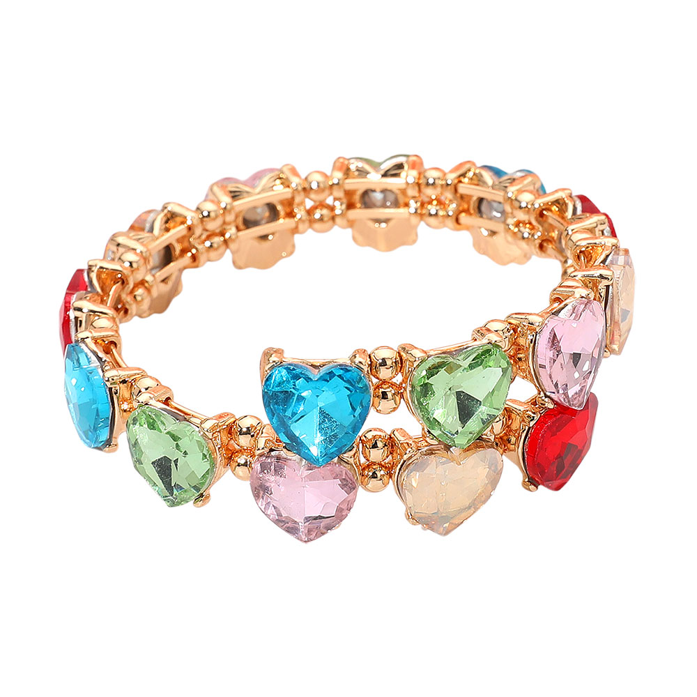 Heart Stone Cluster Link Adjustable Evening Bracelet