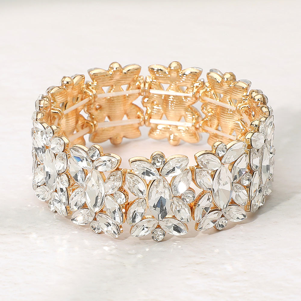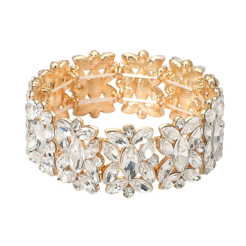 • A sparkling stretch bracelet with marquise floral crystal detailing designed for effortless elegance. Comfortable to slip on and perfect for parties, weddings, and formal events, adding radiant shine and a refined finishing touch to both evening and special-occasion looks.