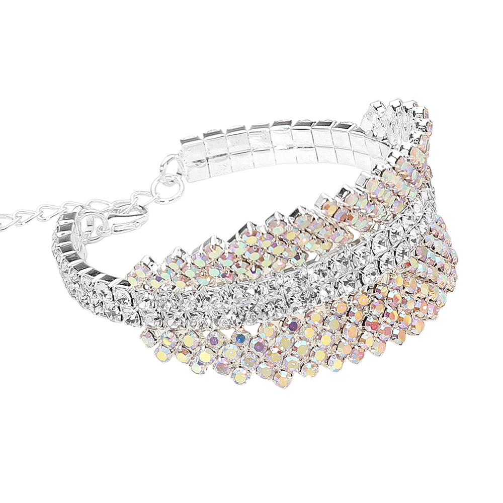 • Make a dazzling impression with this multi-row crystal statement bracelet. Designed with layered rows of radiant stones that catch the light from every angle, it adds a glamorous sparkle to any ensemble. Perfect for formal events, evening wear, or adding shine to a chic everyday look.