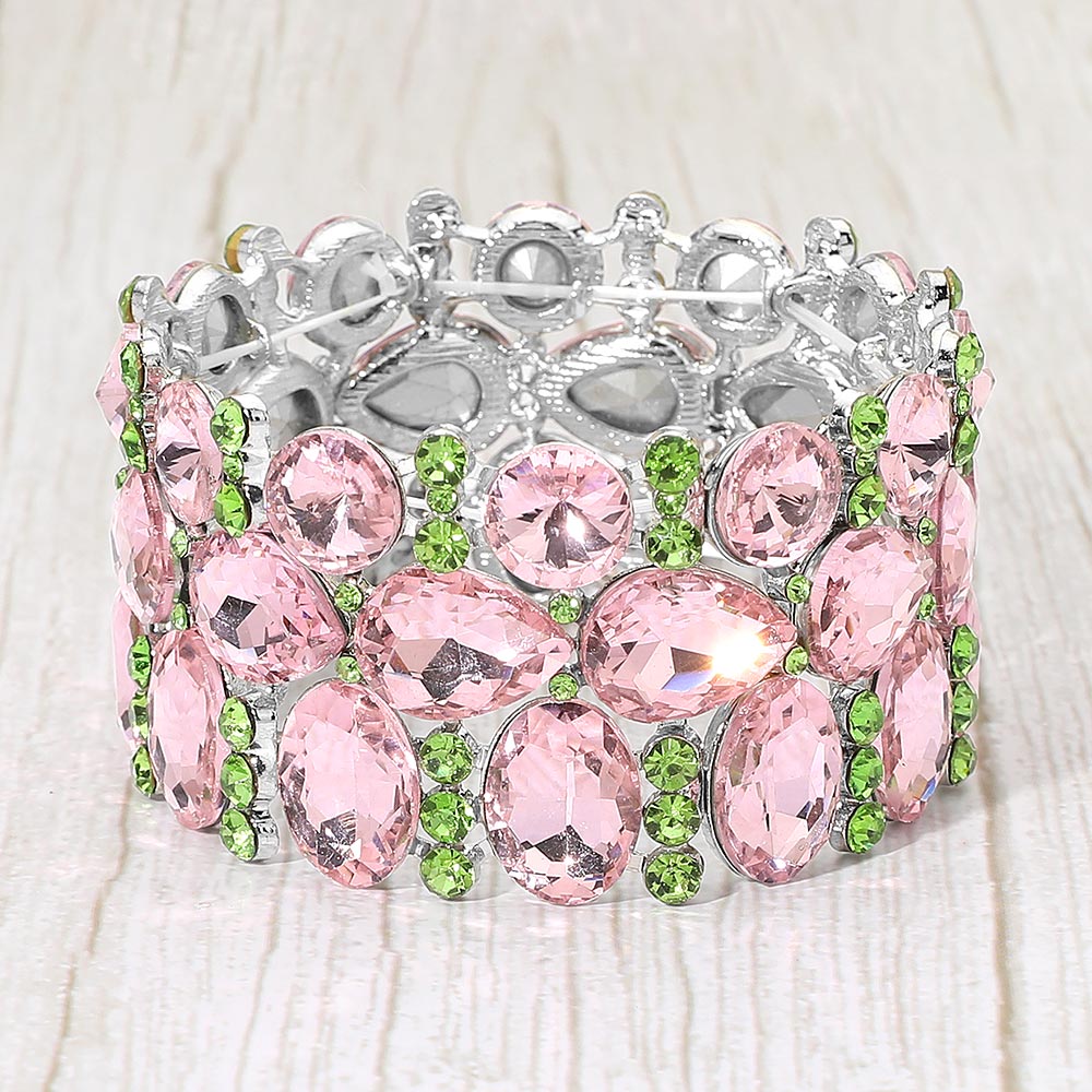 Multi Stone Cluster Evening Stretch Bracelet