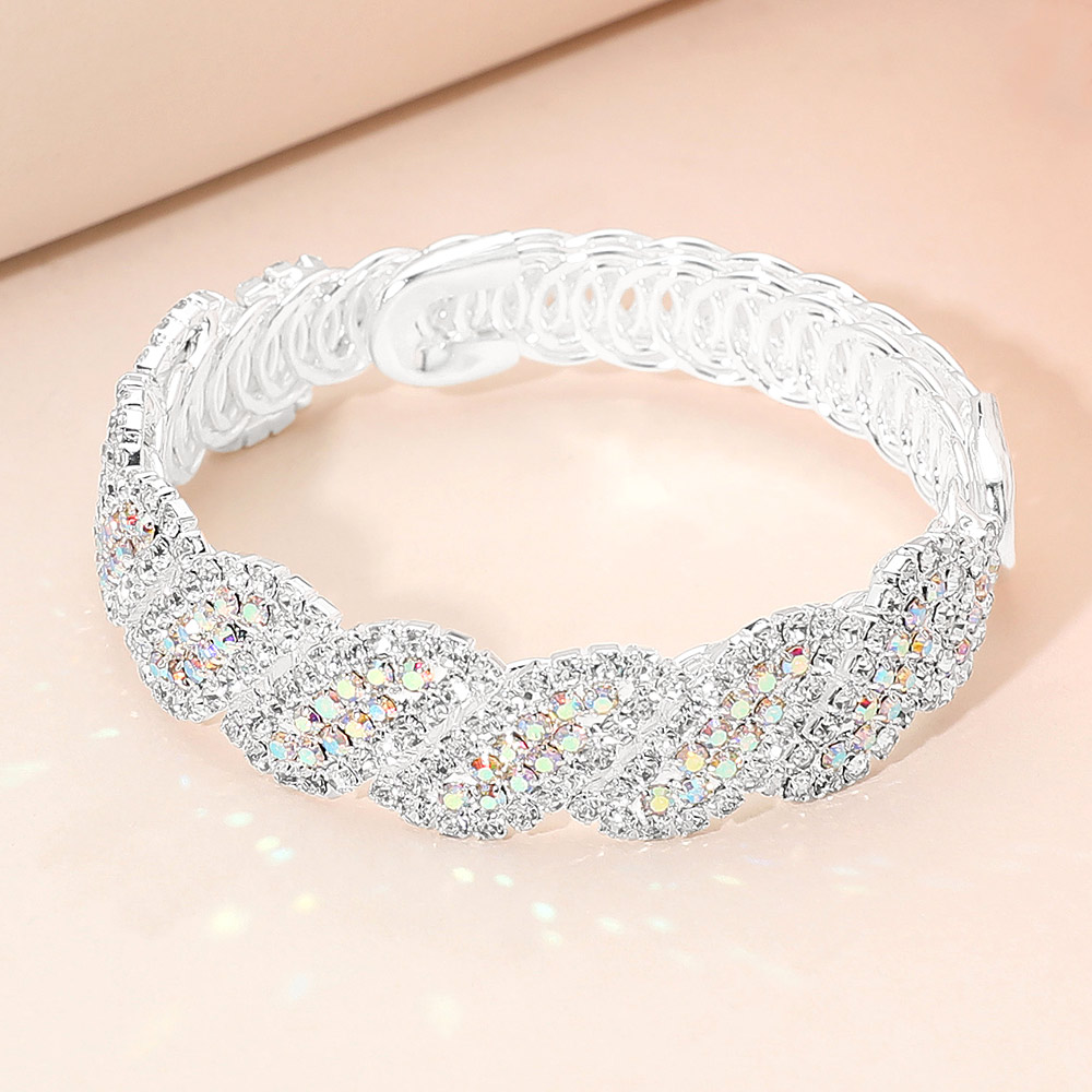 Rhinestone Paved Twisted Adjustable Evening Bracelet