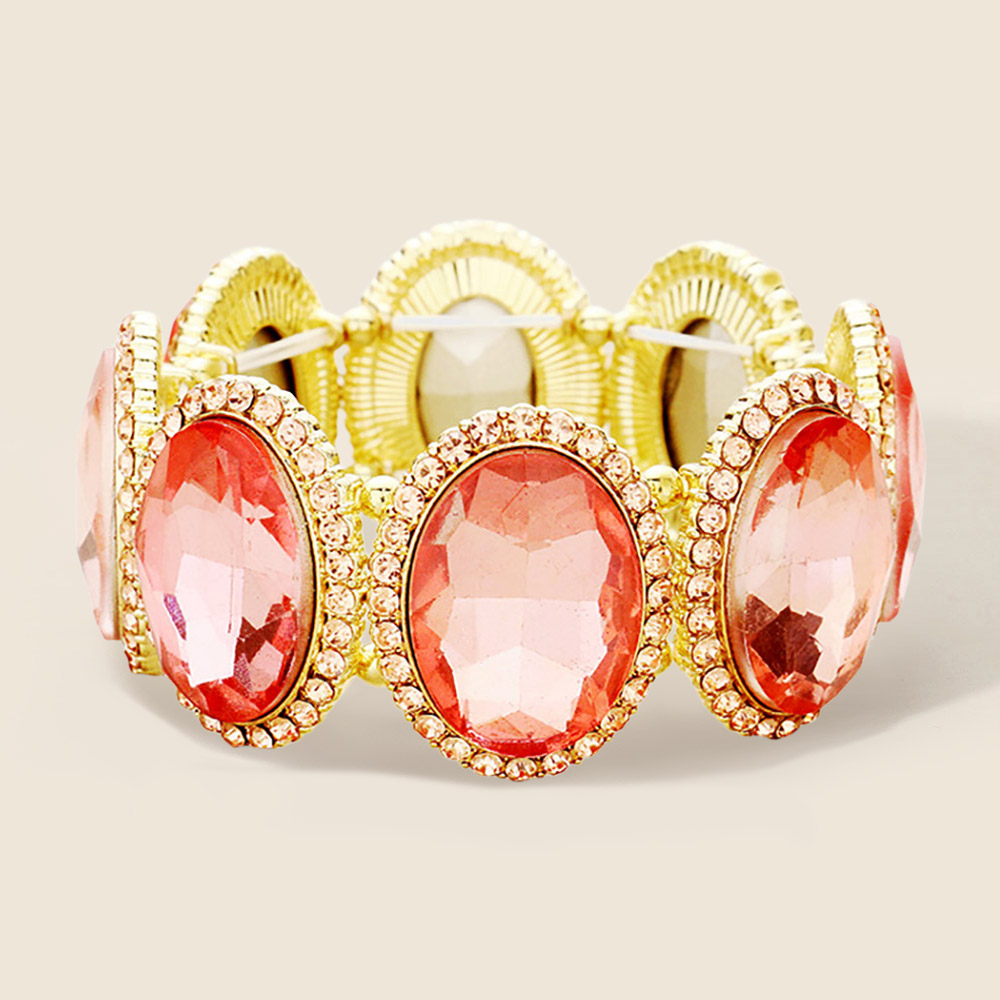 Rhinestone Trim Oval Crystal Stretch Evening Bracelet