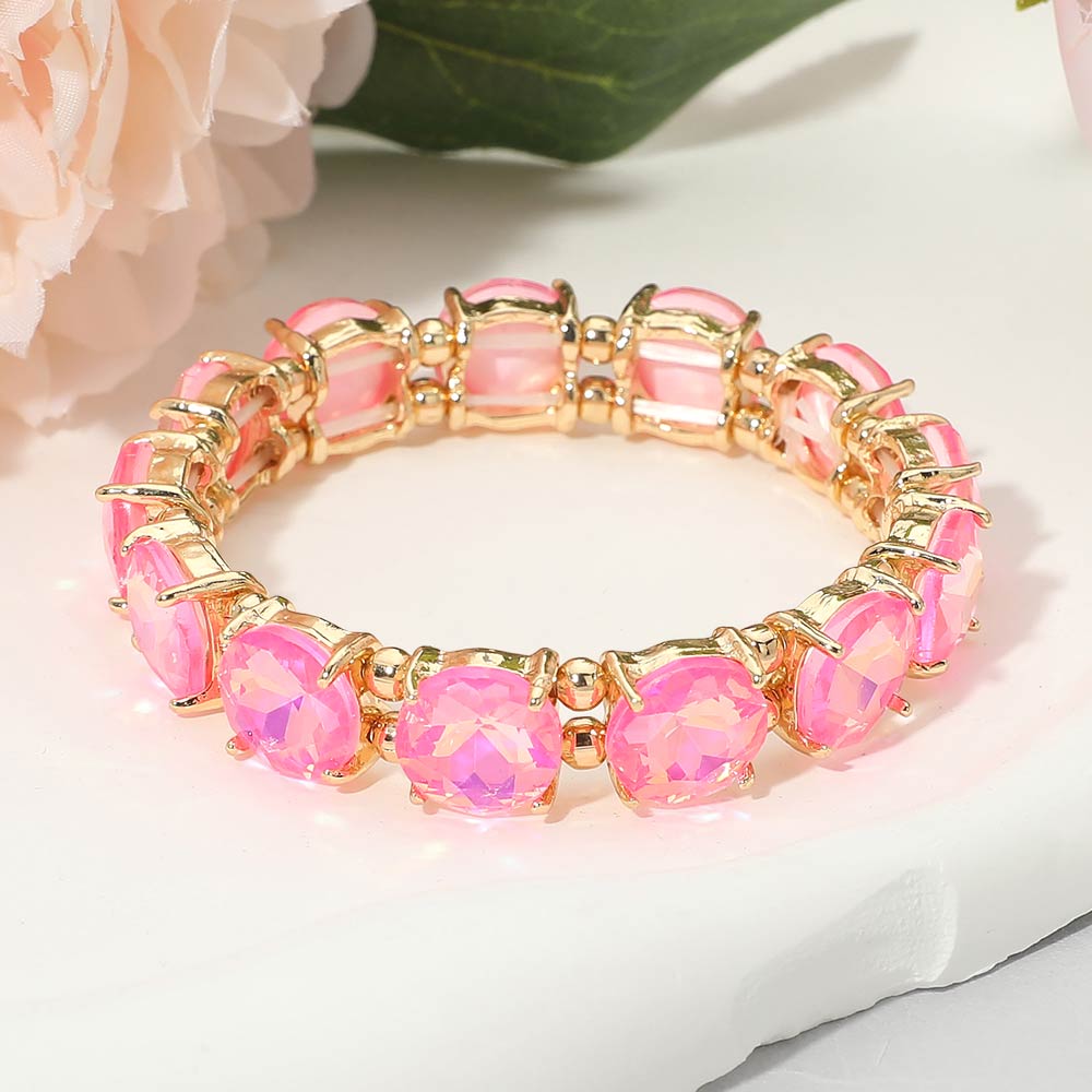 Round Stone Cluster Beaded Stretch Evening Bracelet