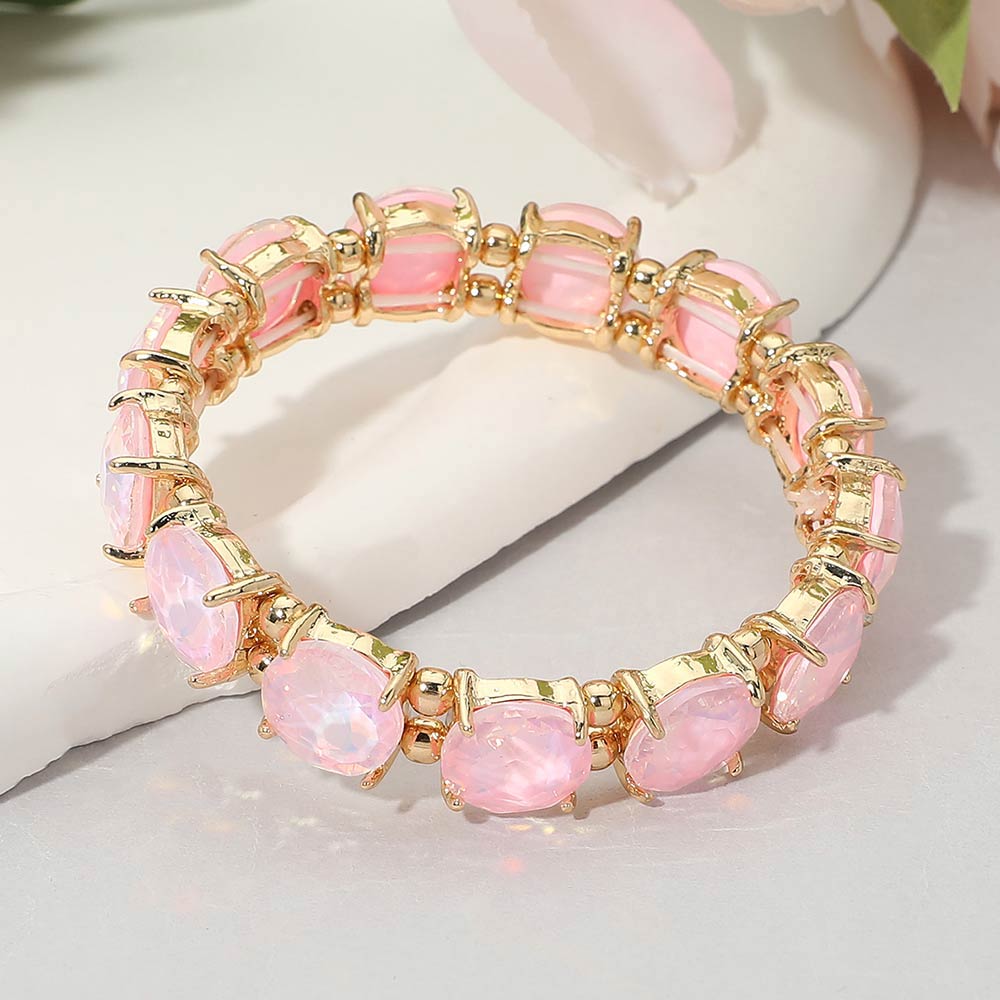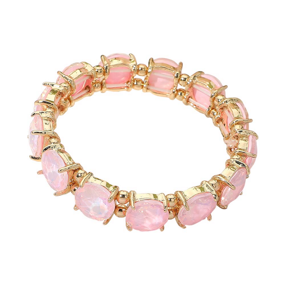 Round Stone Cluster Beaded Stretch Evening Bracelet