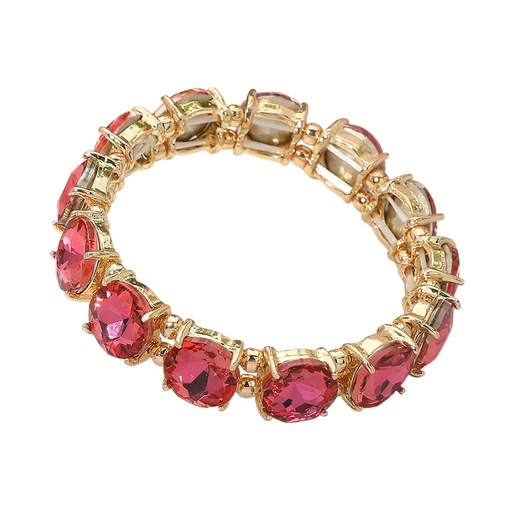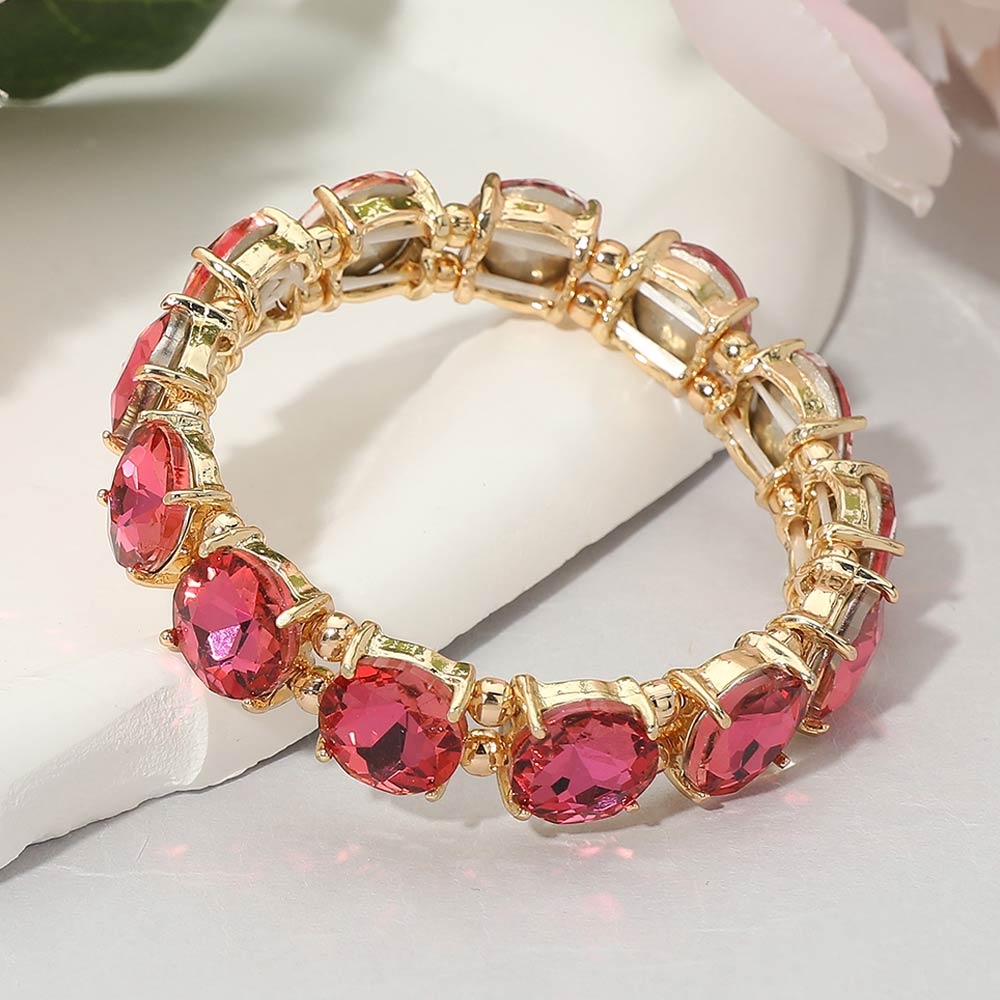 Round Stone Cluster Beaded Stretch Evening Bracelet