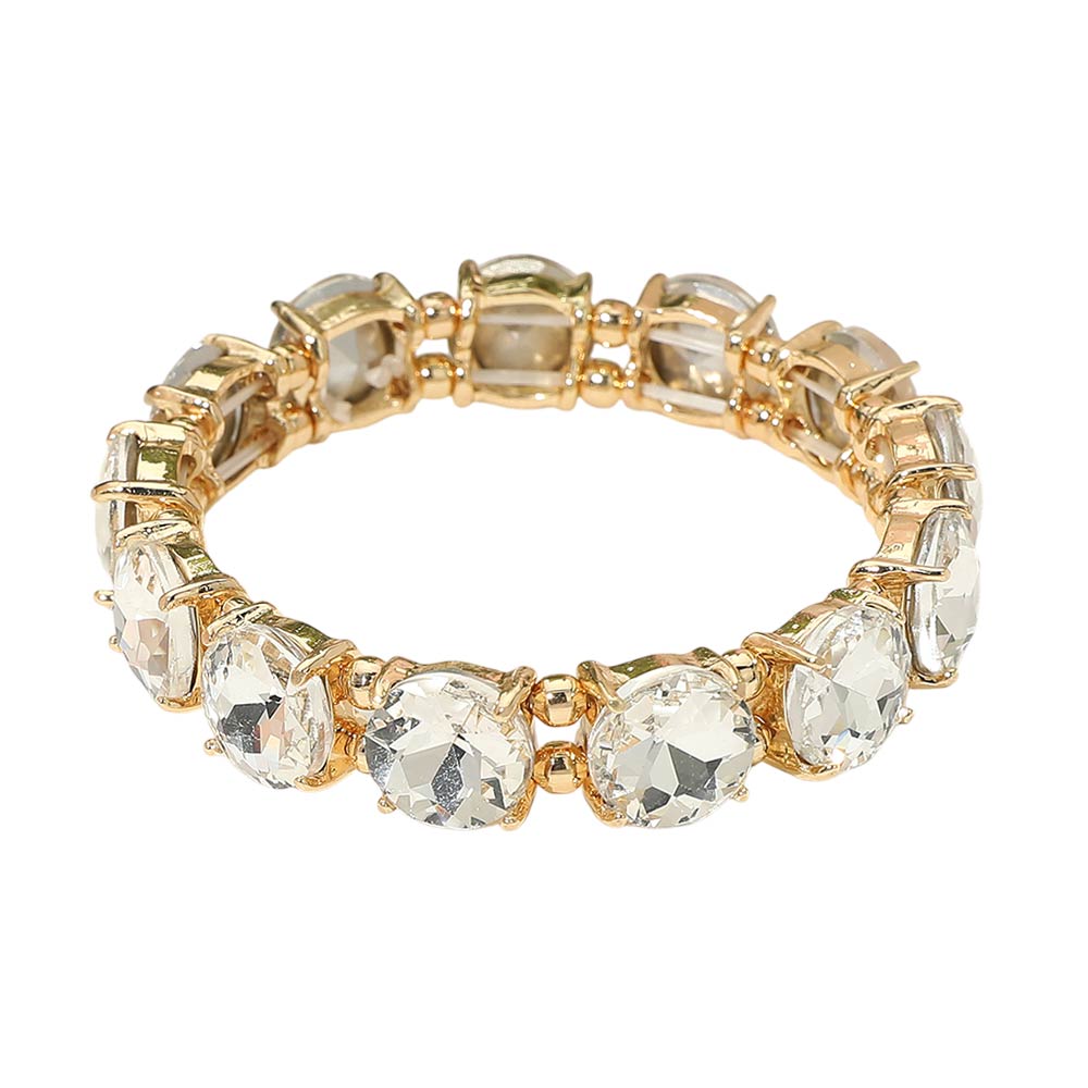 Round Stone Cluster Beaded Stretch Evening Bracelet