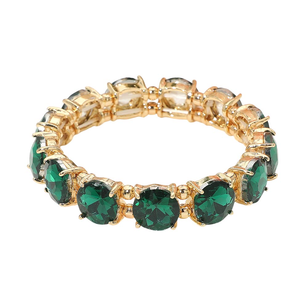 Round Stone Cluster Beaded Stretch Evening Bracelet