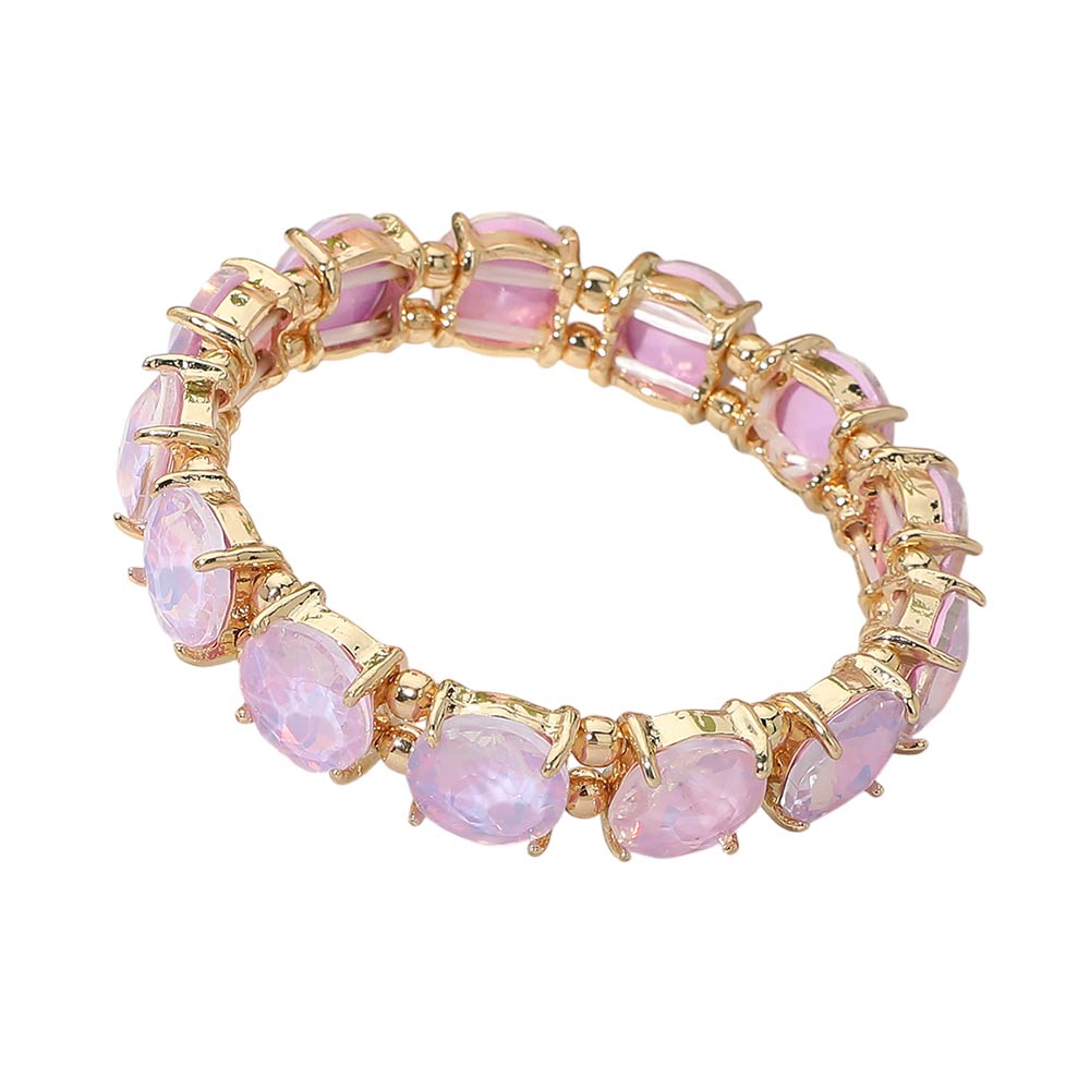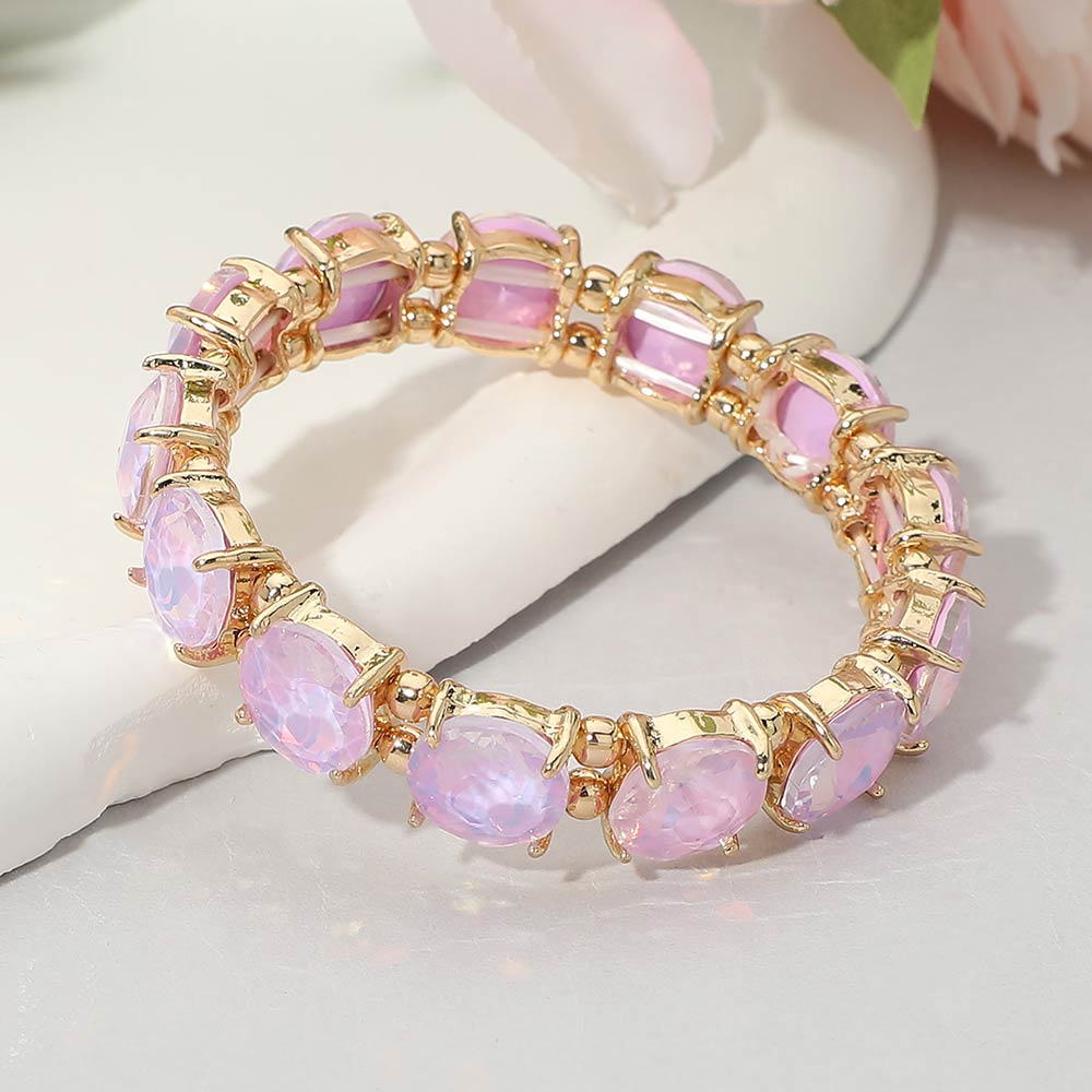 Round Stone Cluster Beaded Stretch Evening Bracelet