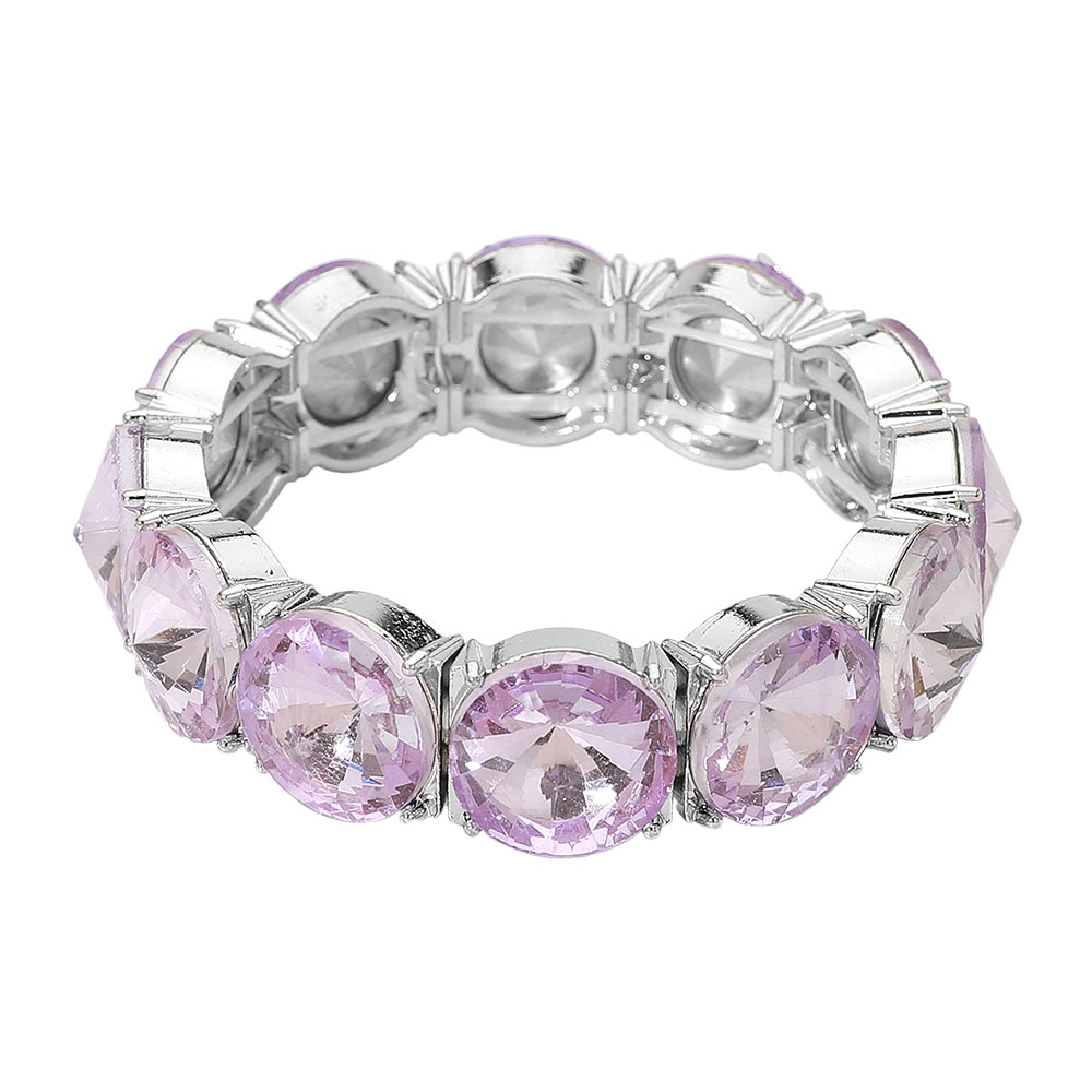 • Elegant stretch bracelet featuring large round-cut faceted stones arranged in a continuous band. The flexible fit offers easy wear while the sparkling design adds a refined touch to everyday and special occasion outfits.