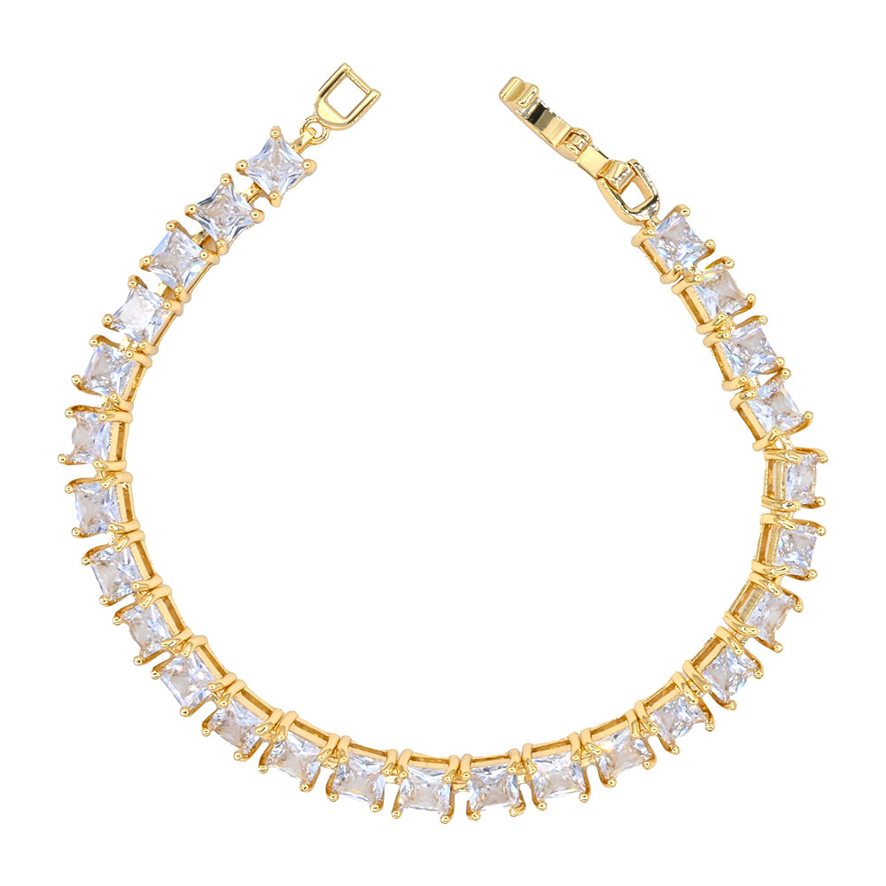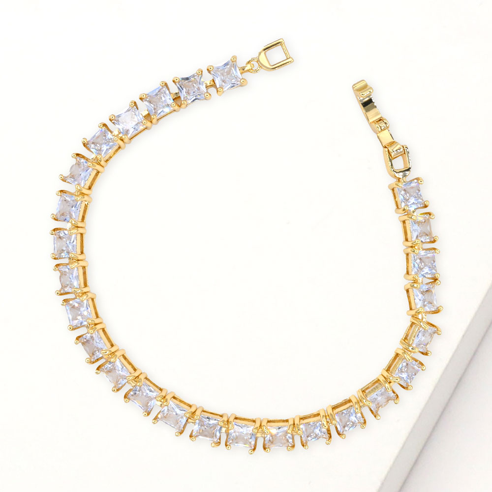 Details • Size : 0.25" H, 7.5" L • Fold Over Closure • Add timeless elegance to your jewelry collection with this square cut tennis bracelet. Featuring radiant stones in a classic design, it’s the perfect piece to elevate any look, from everyday chic to evening sophistication. • CZ Cubic Zirconia • Lead and Nickel Compliant