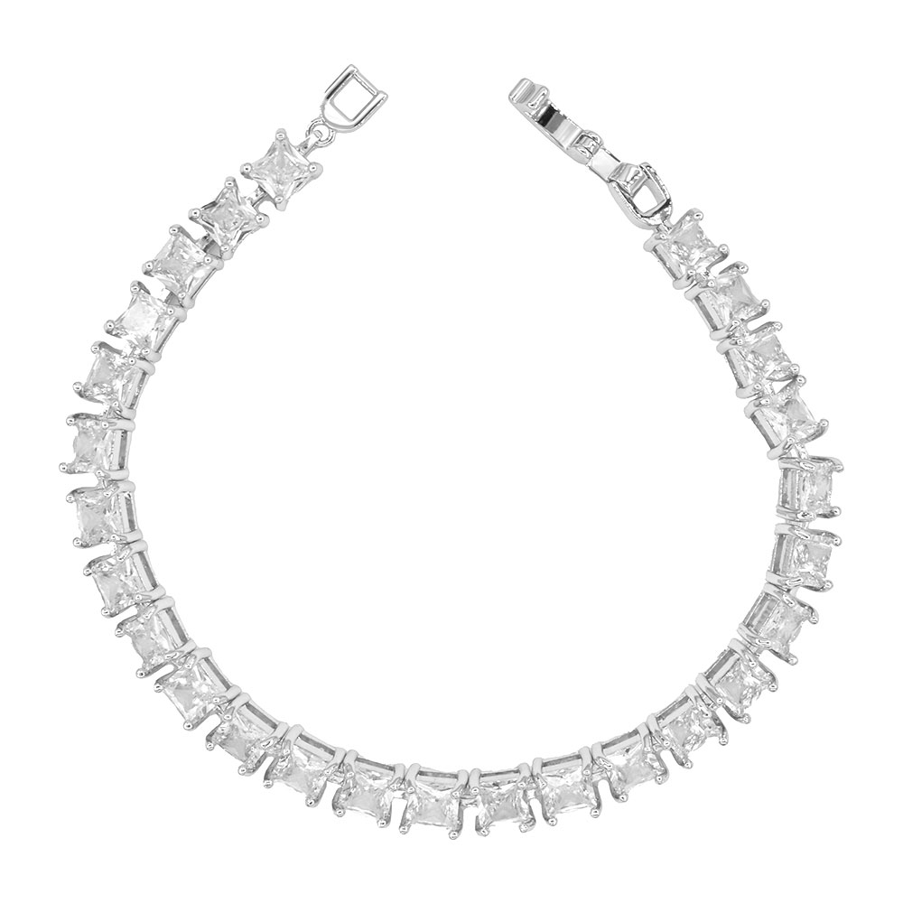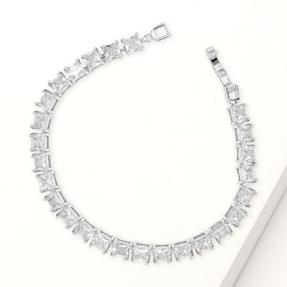 Details • Size : 0.25" H, 7.5" L • Fold Over Closure • Add timeless elegance to your jewelry collection with this square cut tennis bracelet. Featuring radiant stones in a classic design, it’s the perfect piece to elevate any look, from everyday chic to evening sophistication. • CZ Cubic Zirconia • Lead and Nickel Compliant