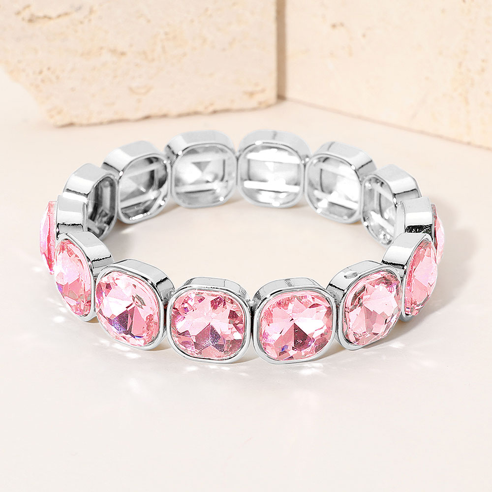 Square Cut Gem Beaded Stretch Evening Bracelet