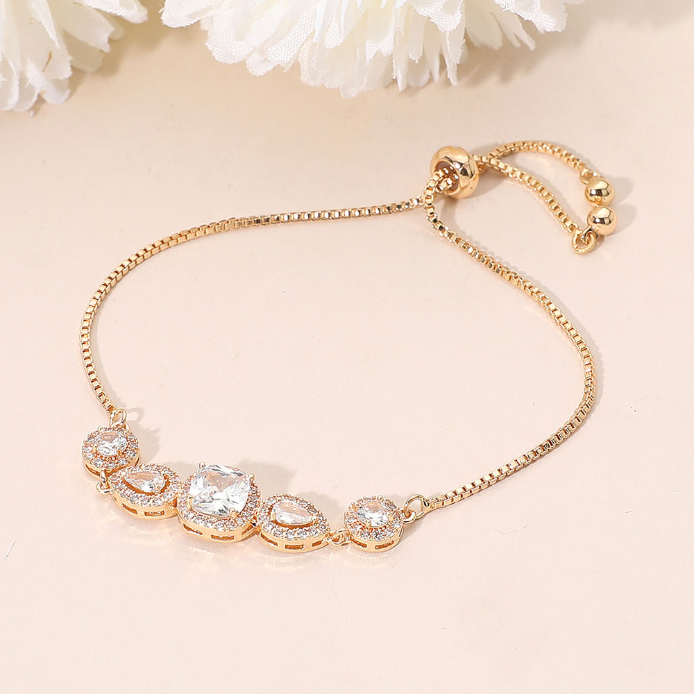 Square CZ Cushion Center Teardrop Round Stone Link Adjustable Evening Bracelet