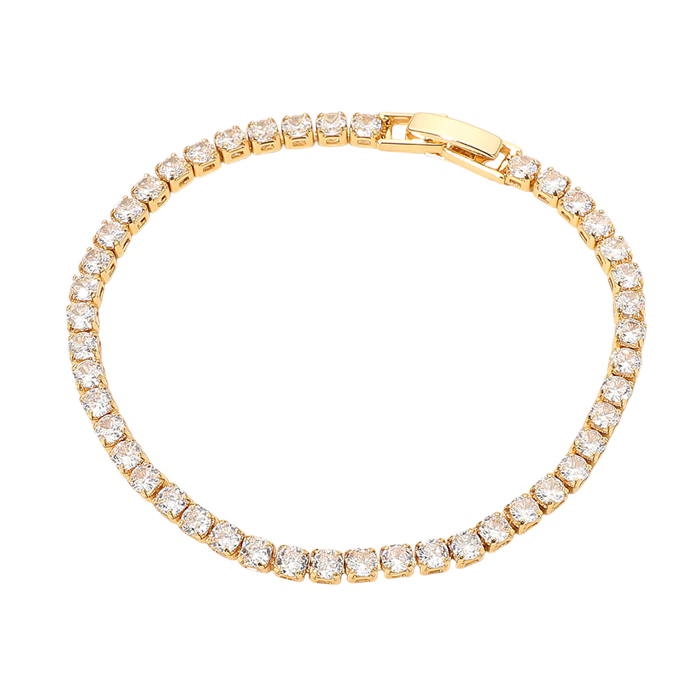 18K Gold Dipped Classic Round Tennis Chain Bracelet