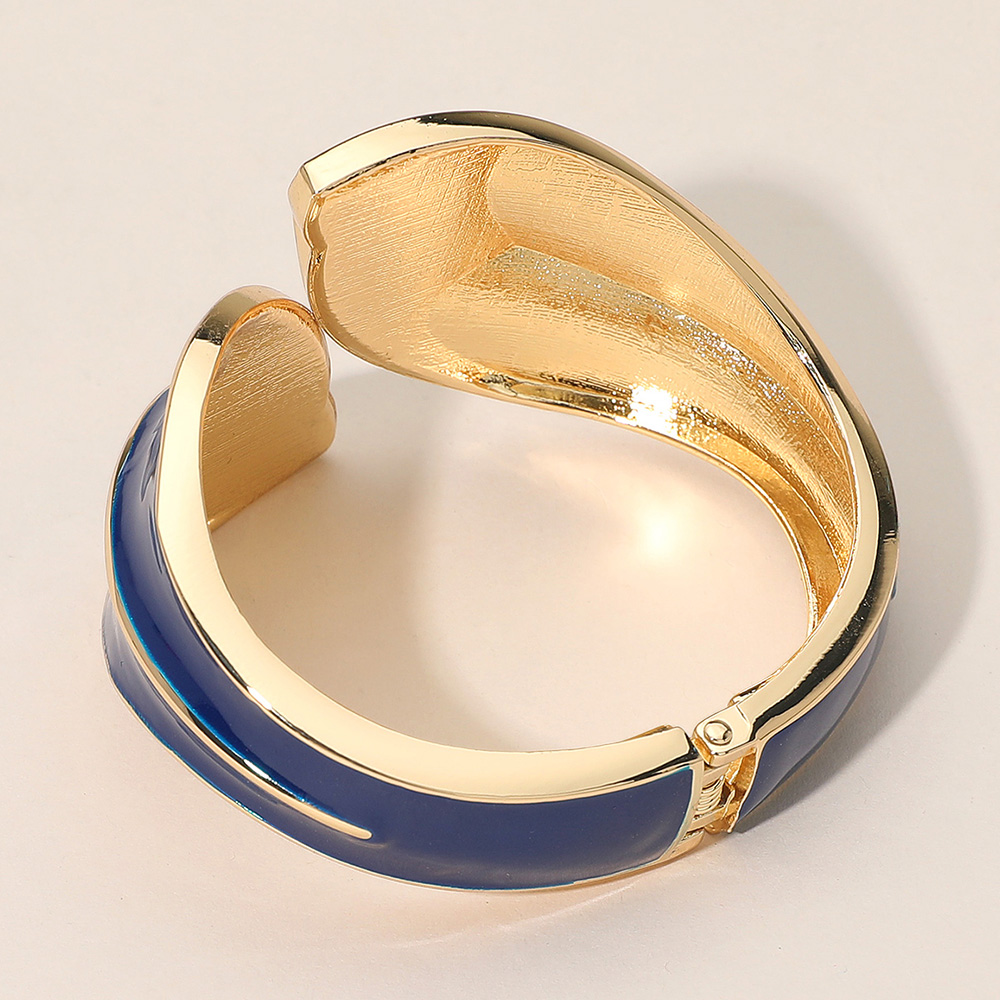 • Make a sophisticated statement with this Abstract Leaf Cuff Bracelet. This wide, hinged bangle features a bold, sculptural design with two overlapping, curved leaf shapes finished in a sleek, high-gloss enamel. The smooth, shiny enamel is framed by a highly polished metallic tone, creating a striking contrast and a luxurious, dimensional look. The wide cuff style is perfect for formal events or adding a dramatic, modern touch to any outfit. It secures easily with a durable hinge closure.