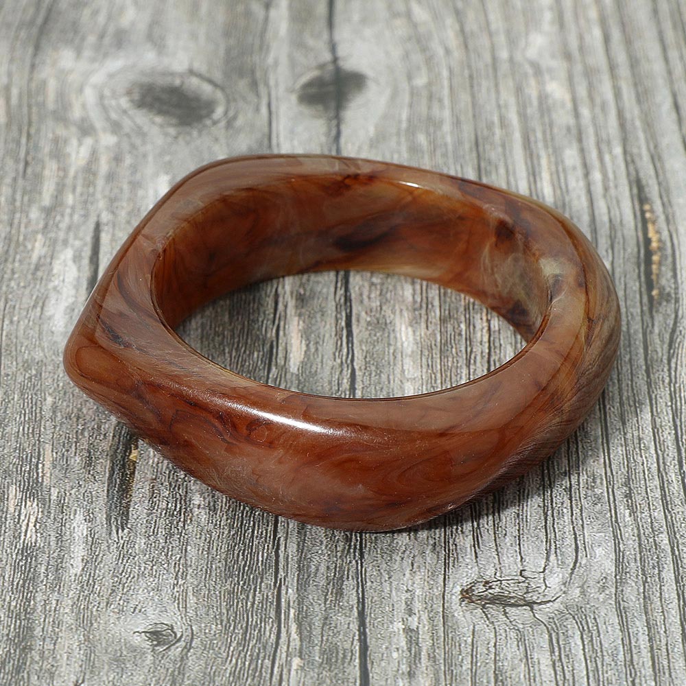 Details • Size : 0.8" H, 2.5" D • Add modern flair to your look with this square resin bangle, featuring a smooth polished finish for a sleek touch. Perfect for layering or wearing solo, offering a versatile accessory that blends contemporary style with minimalist elegance.