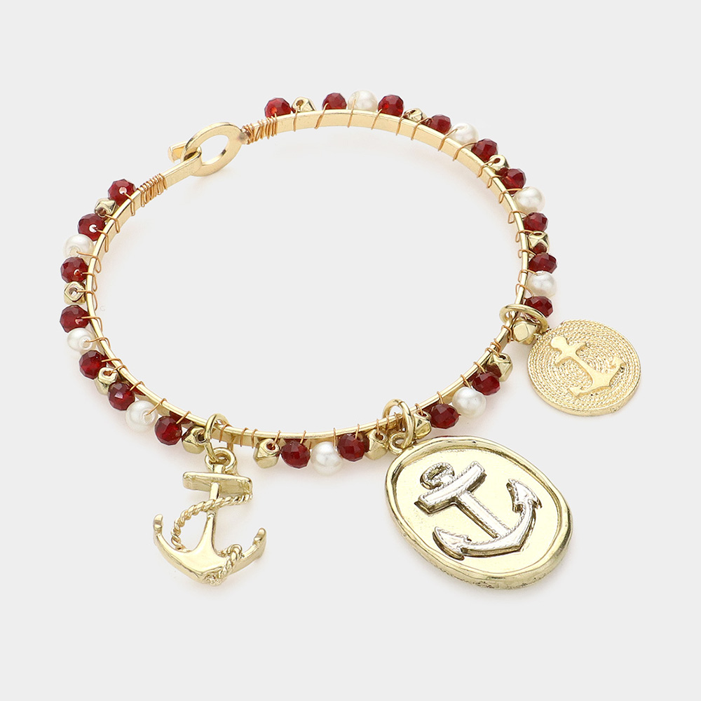 Anchor Sea Shell Pearl Dolphin Fish Rope Sea Turtle Charm Embellished Triple Layered Necklace