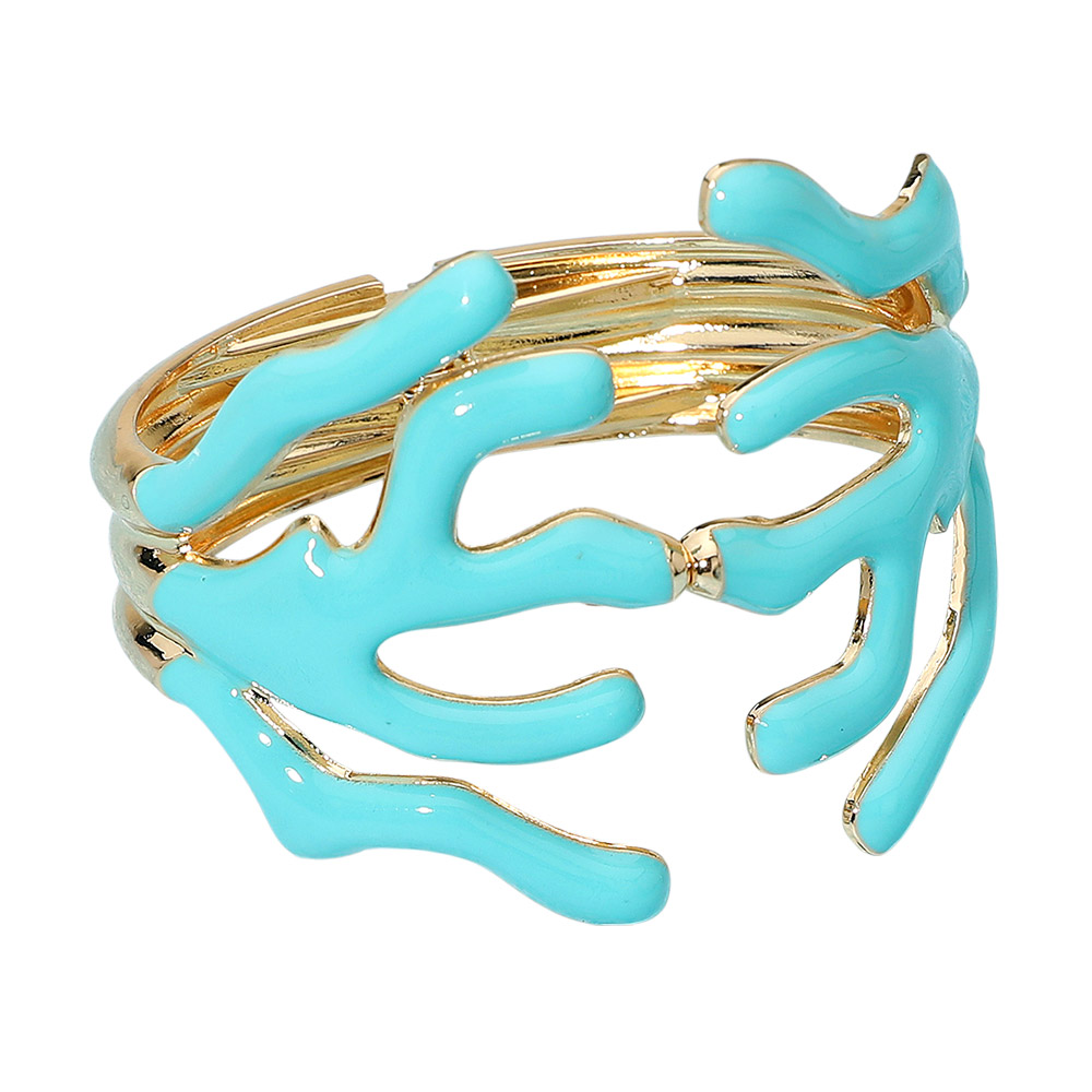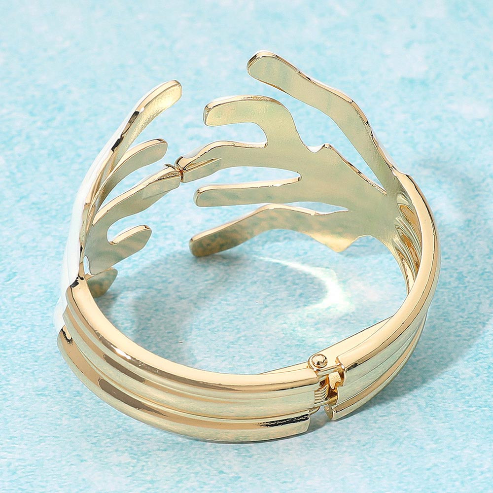 • Bold coral-inspired openwork bracelet featuring fluid branch-like shapes for a modern, sculptural look. Designed with a hinged closure for comfort and style, this statement piece adds a touch of artistic elegance to any outfit, perfect for both casual and evening wear.