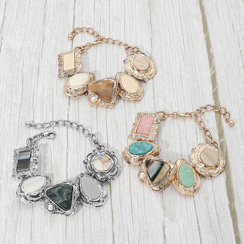 Bold Mixed Vintage Frame Stone Charm Link Statement Bracelet
