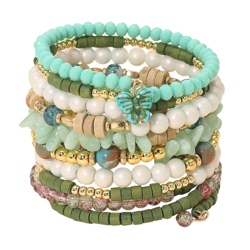 Details • Size : 2.5" H • Adjustable • Layered adjustable bracelet set featuring mixed bead textures and a delicate butterfly accent for a playful yet balanced look. Designed for easy wear and versatile styling, this stacked bracelet adds dimension to everyday outfits, seasonal looks, or gift-ready accessory collections with a charming statement finish. • Lead and Nickel Compliant