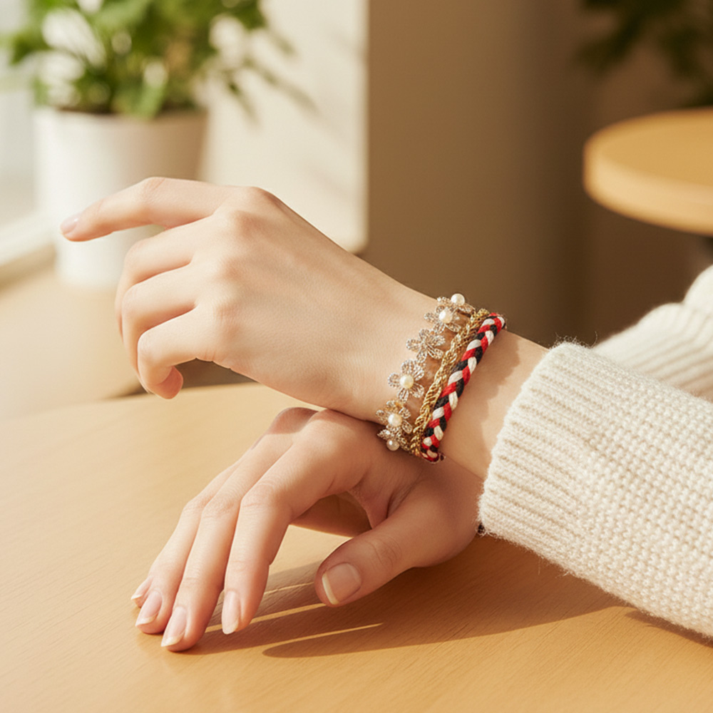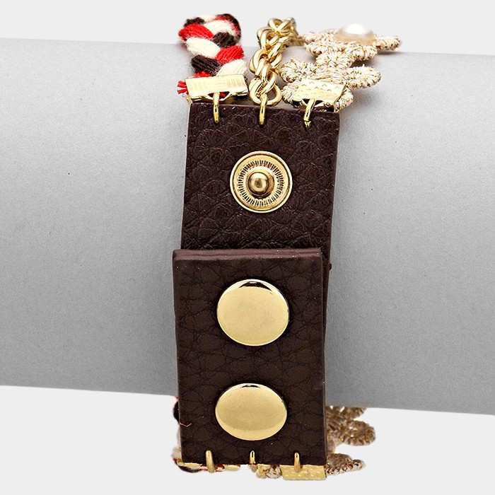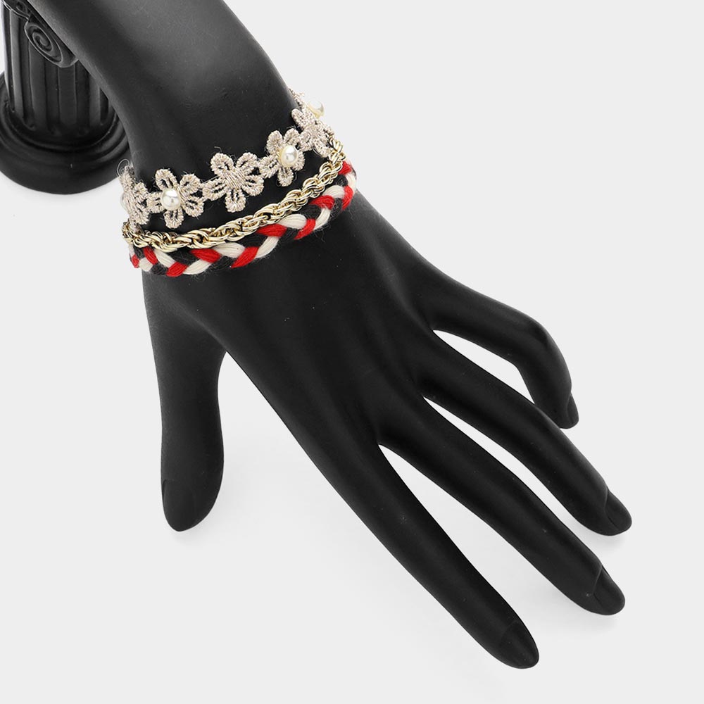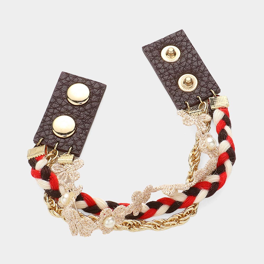 Quatrefoil Pendant Accented Seed Beads Strand Pull Tie Cinch Bracelet