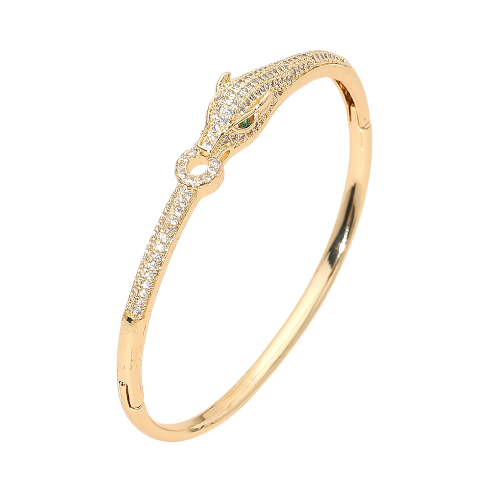 CZ Stone Paved Panther Leopard Head Accent Hinged Bangle Bracelet