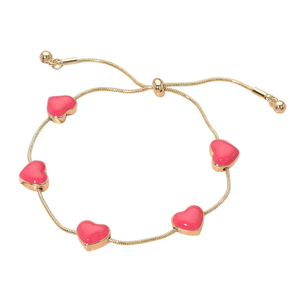 Details • Size : 0.3" H • Adjustable • Elegant adjustable bracelet featuring glossy heart station accents evenly spaced along a smooth slider chain. Designed for a comfortable, flexible fit, this romantic style is perfect for everyday wear, gifting, or layering with other bracelets. A charming addition to boutique assortments and curated jewelry collections. • Lead and Nickel Compliant