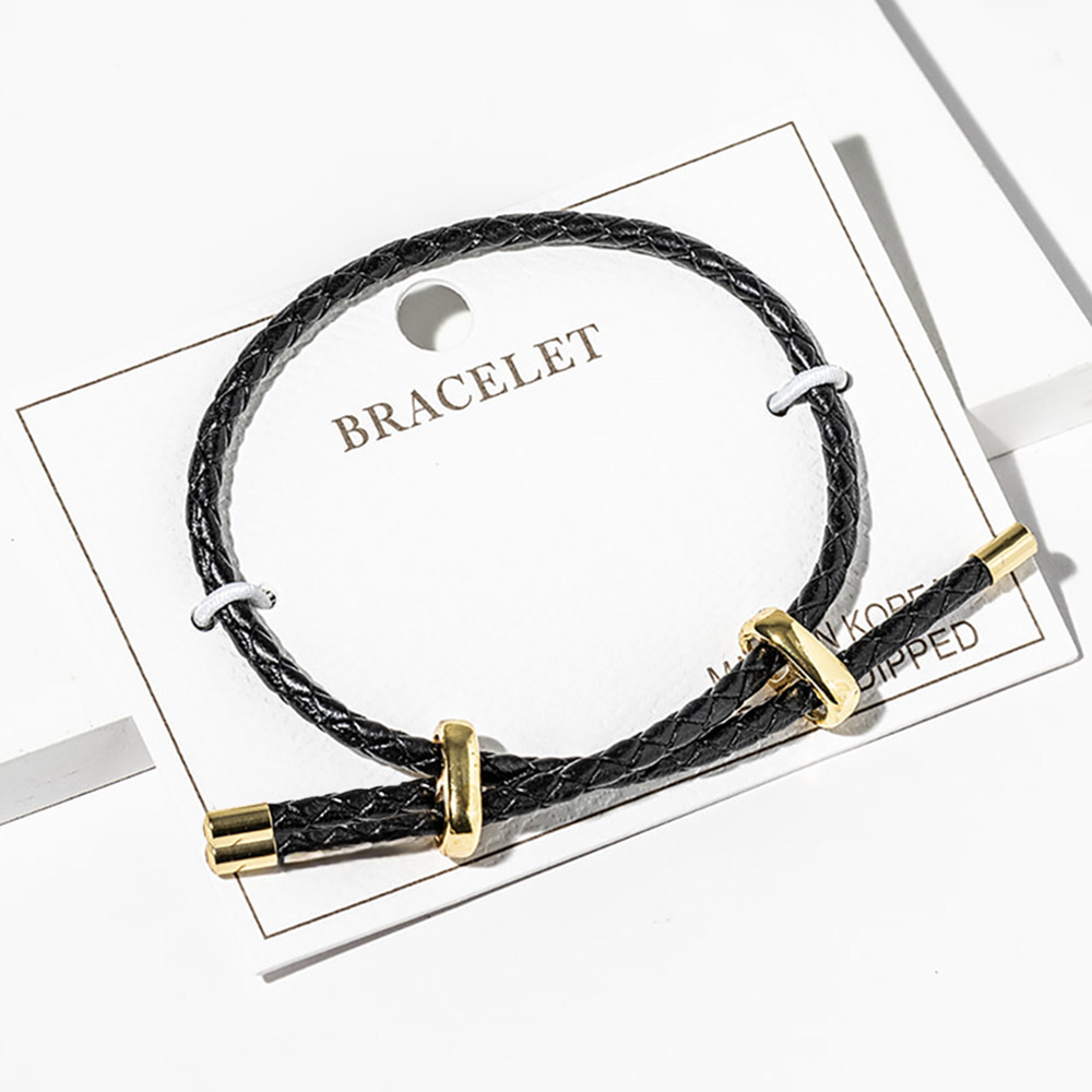 Details • Size : 0.5" H • Adjustable • A sleek and versatile accessory, this braided bracelet features polished metallic accents for a modern edge. Its minimalist design makes it perfect for everyday wear or pairing with layered styles, offering effortless sophistication for both casual and refined looks. • Gold Dipped • Lead and Nickel Compliant • Made In Korea