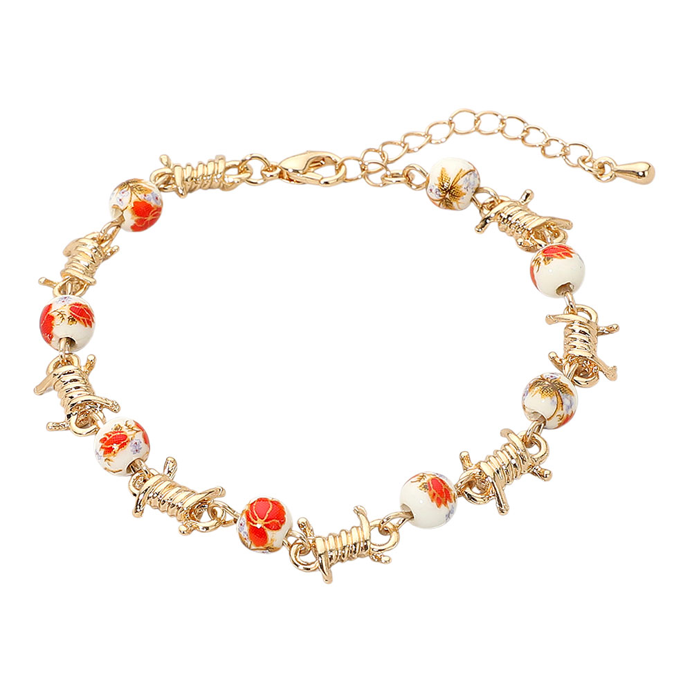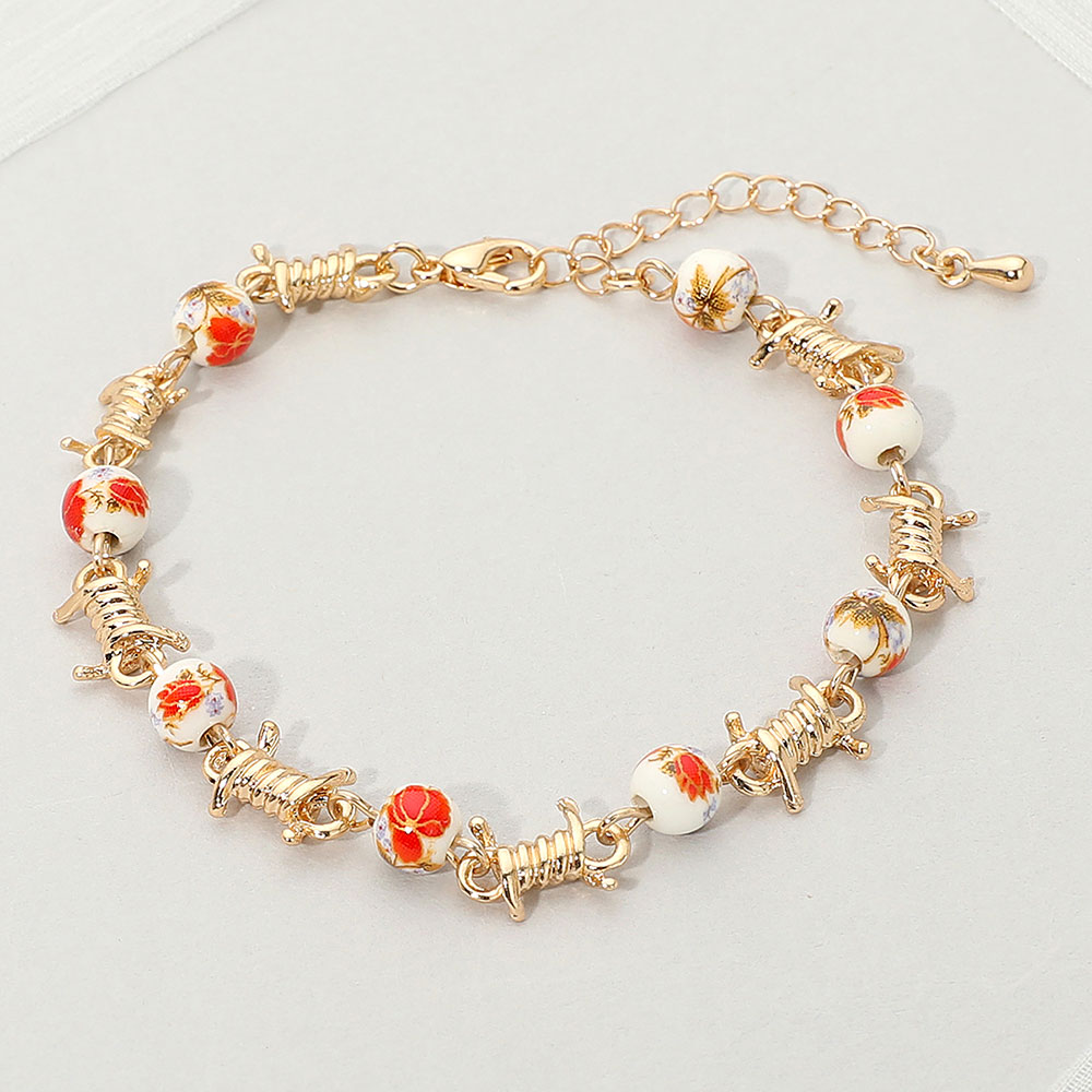 Floral Ceramic Ball Metal Rope Wrap Link Bracelet Floral Ceramic Ball Metal Rope Wrap Link Bracelet Floral Ceramic Ball Metal Rope Wrap Link Bracelet