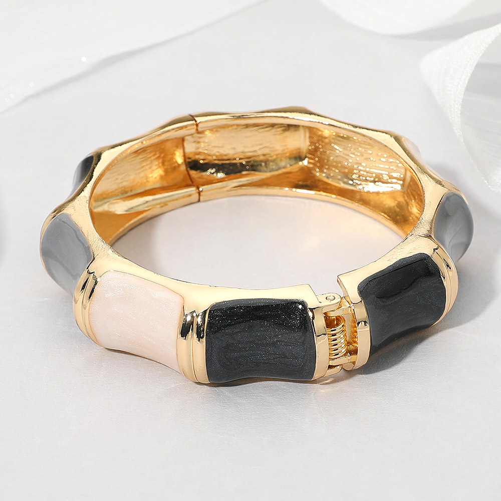 • Stylish enamel hinged bangle bracelet featuring a smooth wave-inspired bamboo shape with a glossy finish. The elegant segmented design adds a modern touch to any outfit, making it ideal for casual and dressy looks. Perfect accessory to elevate everyday or evening style.