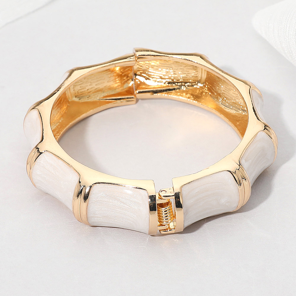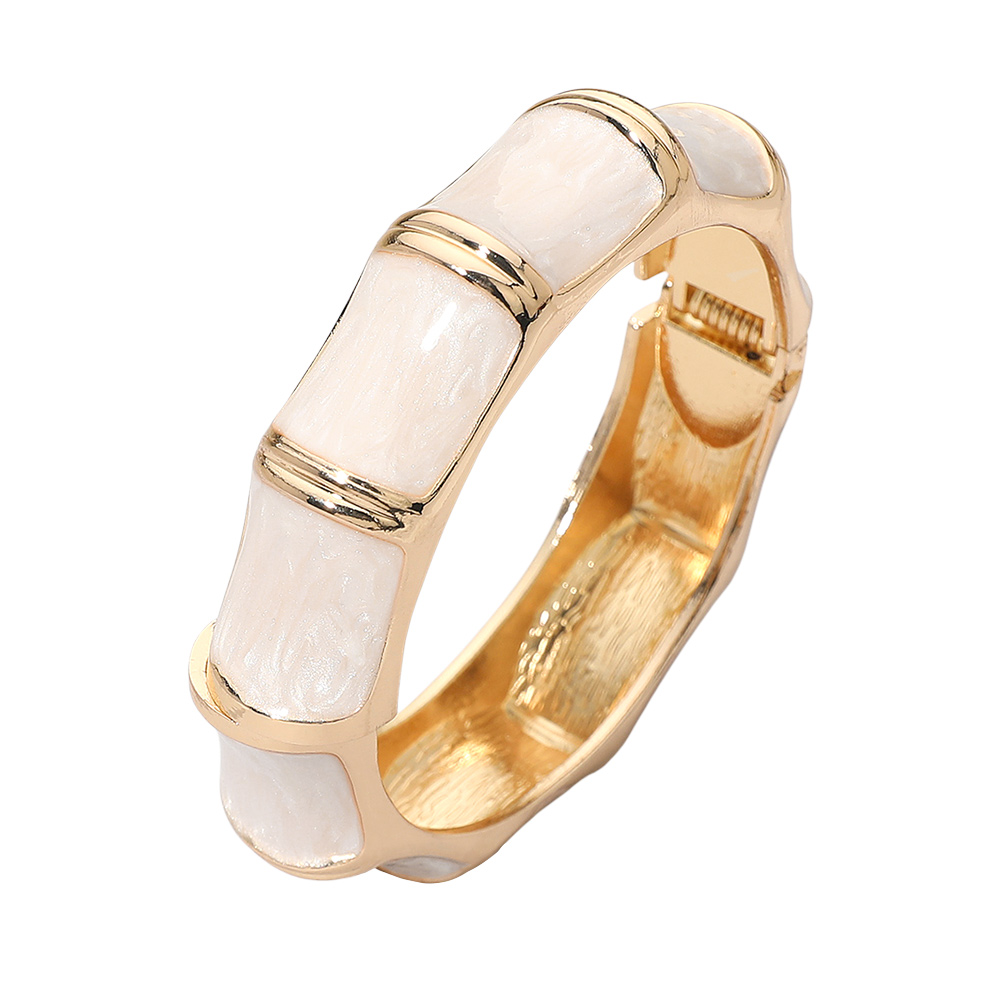 • Stylish enamel hinged bangle bracelet featuring a smooth wave-inspired bamboo shape with a glossy finish. The elegant segmented design adds a modern touch to any outfit, making it ideal for casual and dressy looks. Perfect accessory to elevate everyday or evening style.