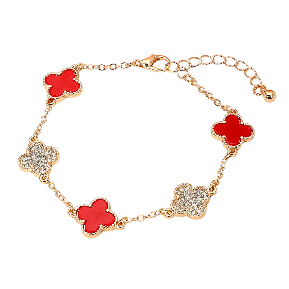 • Elevate your style with this elegant quatrefoil charm bracelet featuring sparkling crystal accents. A chic quatrefoil design perfect for layering or gifting. Adjustable chain for a comfortable fit and everyday glam.