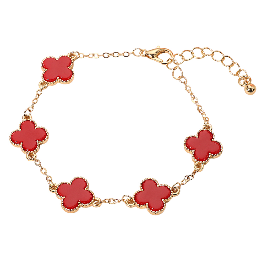 • This elegant four-leaf cquatrefoil chain bracelet features five delicate charms linked by a fine adjustable chain, symbolizing luck and beauty. Its refined design blends timeless sophistication with a modern edge, making it an ideal accessory for both daily wear and special occasions.