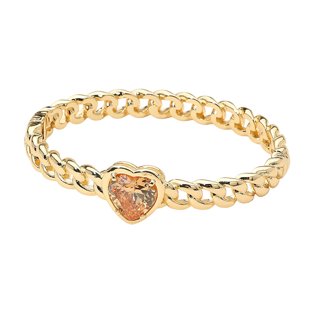 Heart CZ Stone Accent Hinged Chain-Link Bangle Bracelet