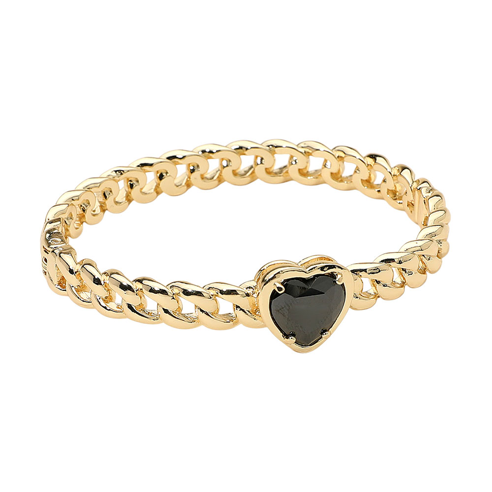 Details • Size : 0.6" H, 2.4" D • Hinged Closure • This elegant chain-link bracelet features a romantic heart-shaped gemstone centerpiece, blending modern charm with timeless beauty. Designed to add a hint of sophistication and sentiment, it’s perfect for both everyday wear and as a thoughtful, stylish gift.