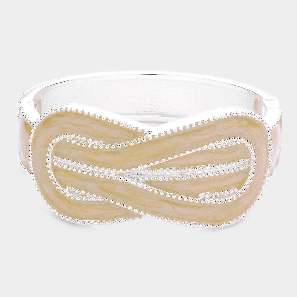 SECRET BOX_Stainless Steel Open Rhinestone Pave Heart Motif Hinged Bangle Bracelet