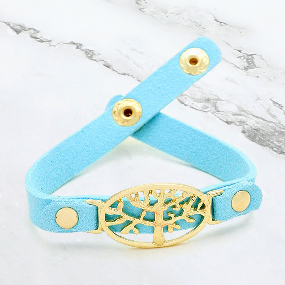 Metal Tree Of Life Faux Suede Bracelet