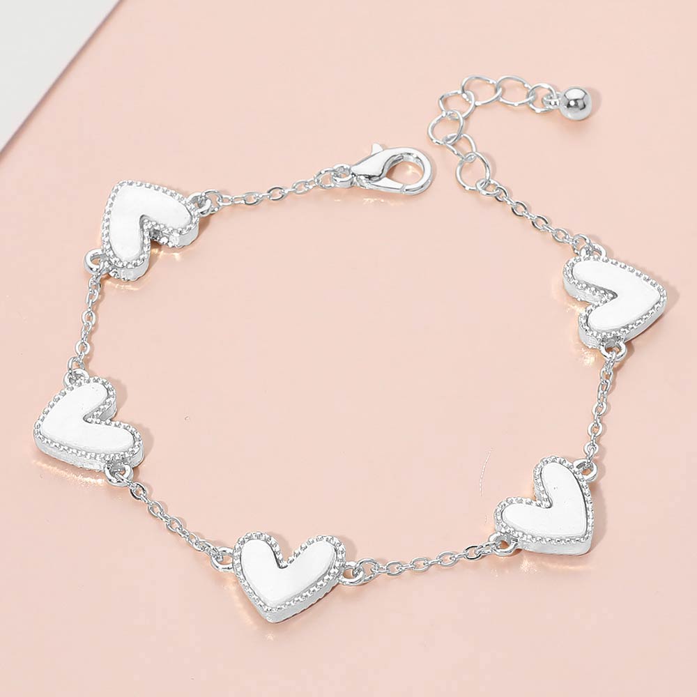Mother of Pearl Heart Charm Station Bracelet Mother of Pearl Heart Charm Station Bracelet