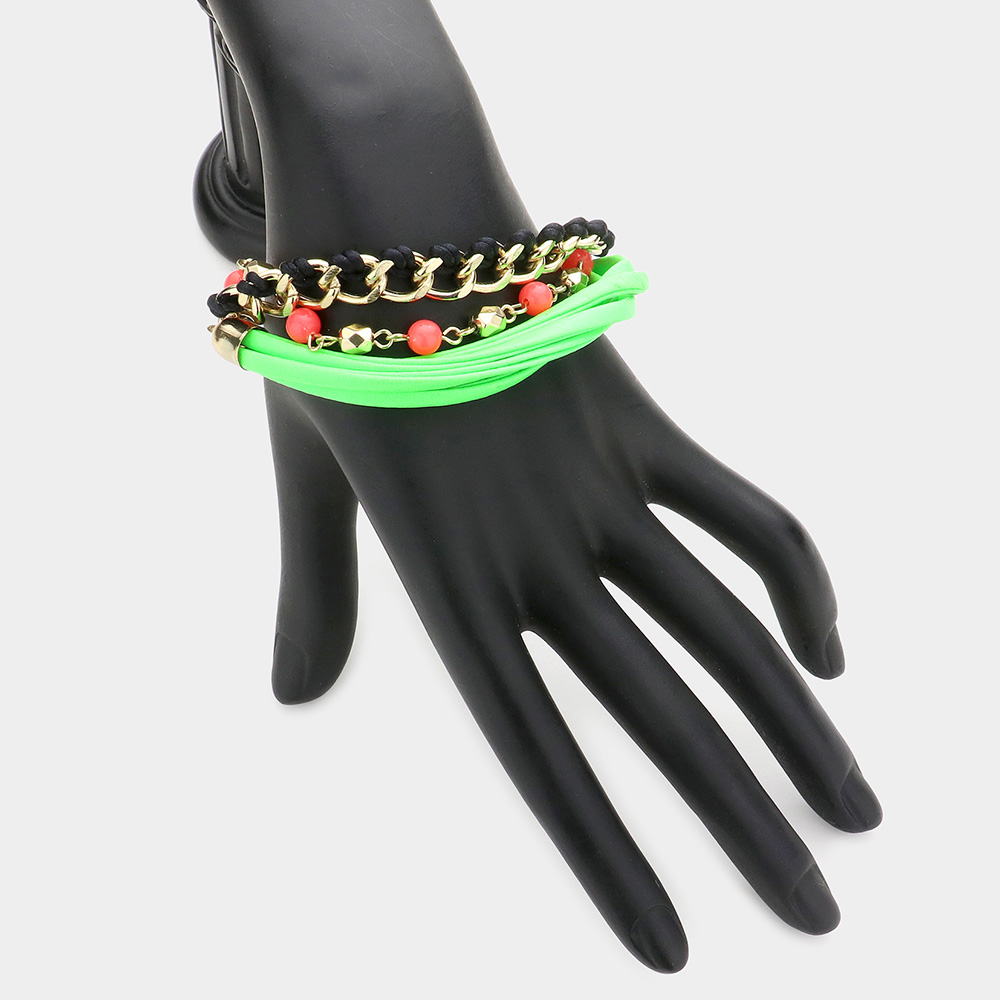 Green Shade Multi Colored Sea Glass Dome Magnetic Bracelet