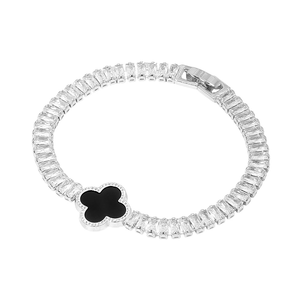 • Refined tennis style bracelet featuring a sleek quatrefoil accent that adds symbolic charm and elevated detail. Designed with a secure clasp for a polished fit, this piece is ideal for everyday elegance, special occasions, boutique assortments, and giftable jewelry collections.