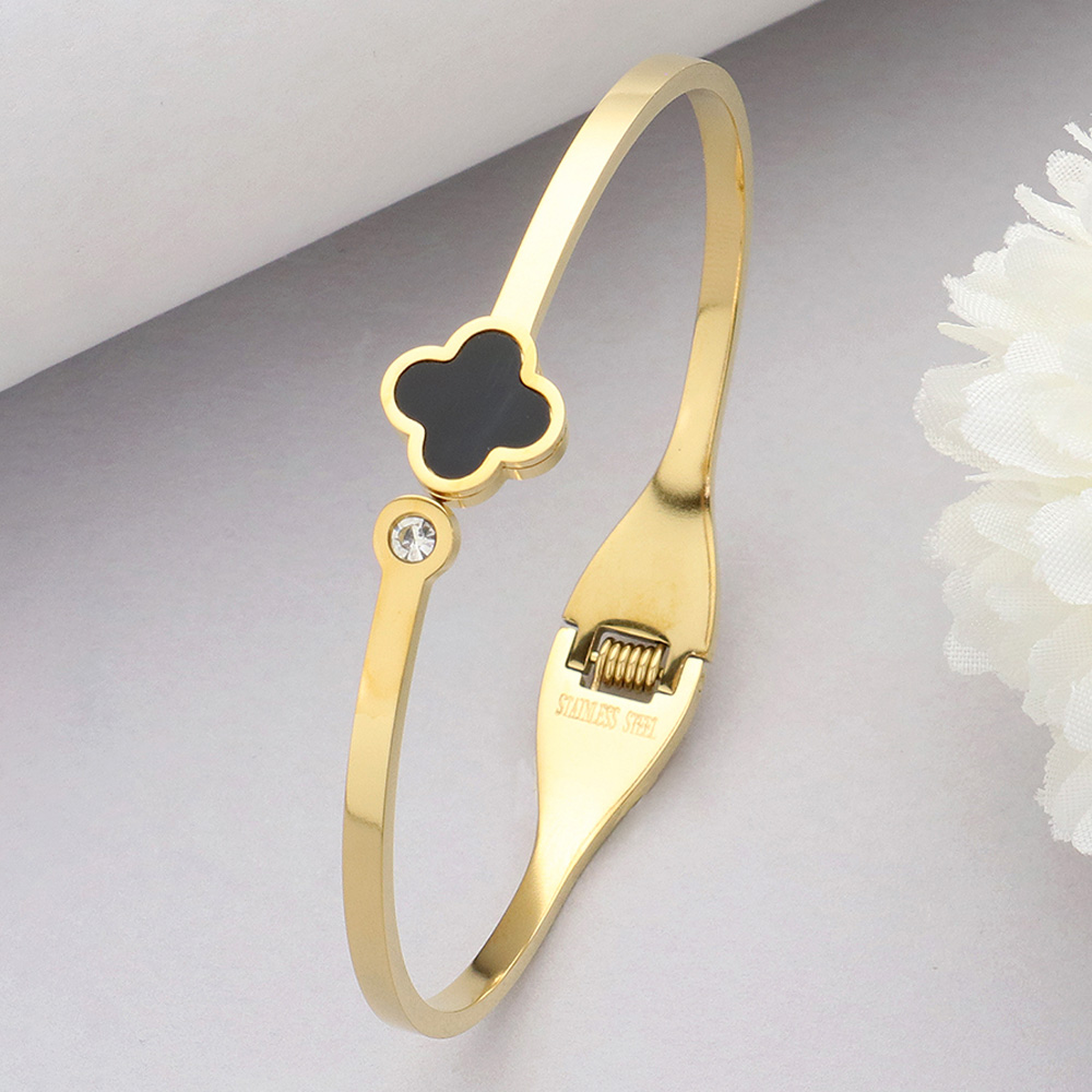 Mother Of Pearl Quatrefoil Pointed Stainless Steel Hinged Bangle Bracelet