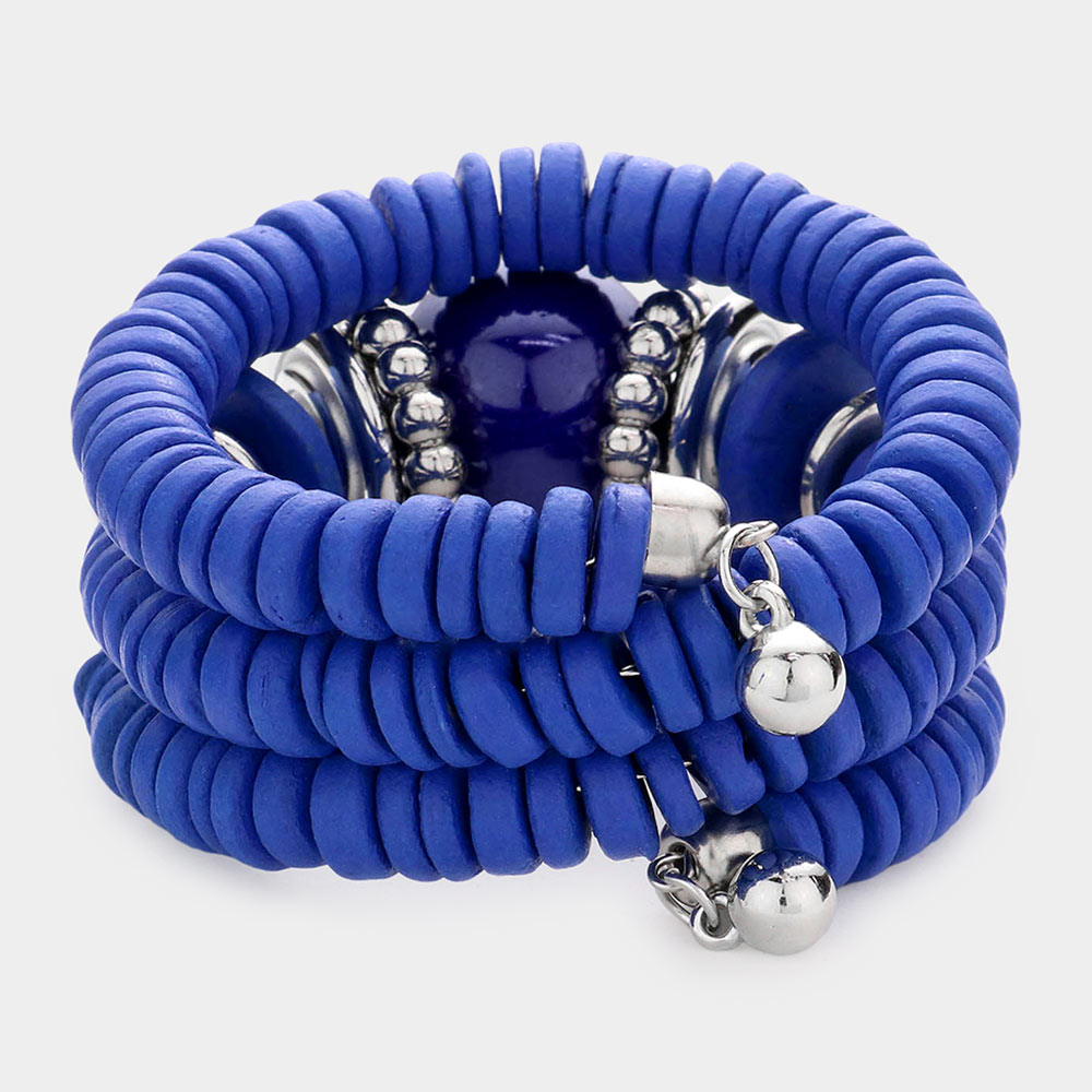 Resin Ball Accented Wood Beaded Adjustable Bracelet