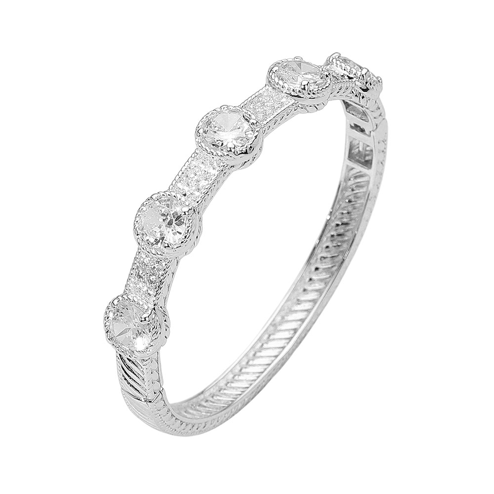 Round CZ Stone Accent Metal Rope Hinged Bangle Bracelet