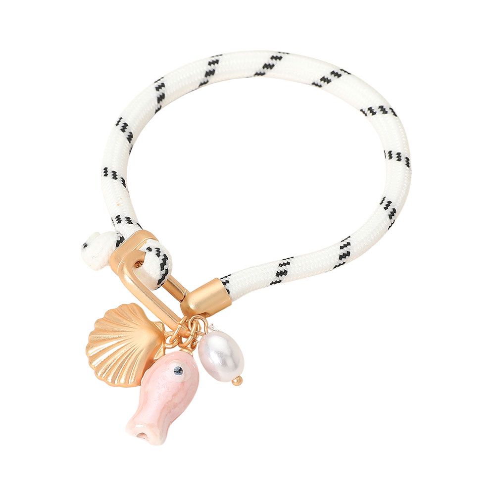 Sea Shell Fish Pearl Charm Rope Bracelet Sea Shell Fish Pearl Charm Rope Bracelet