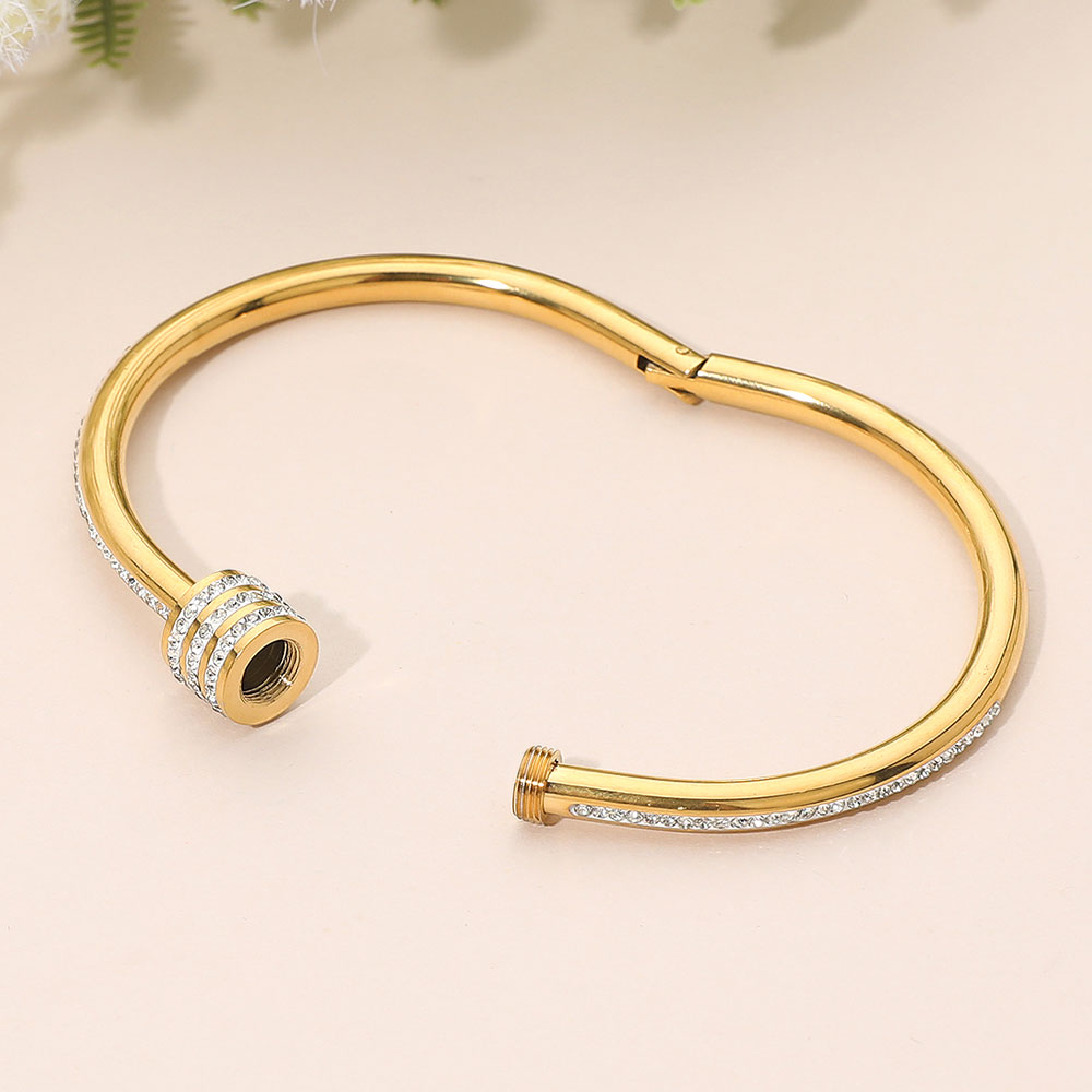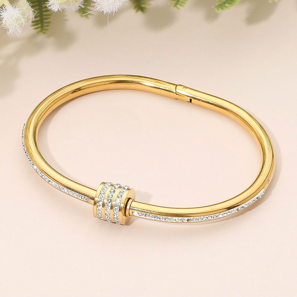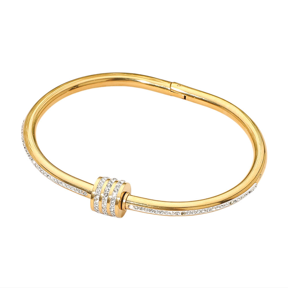 • Sleek hinge bangle bracelet featuring a signature crystal-accent slider bar detail for modern elegance and subtle sparkle. Designed for effortless wear, this refined accessory transitions seamlessly from everyday outfits to evening styling, delivering a polished statement worn solo or layered.