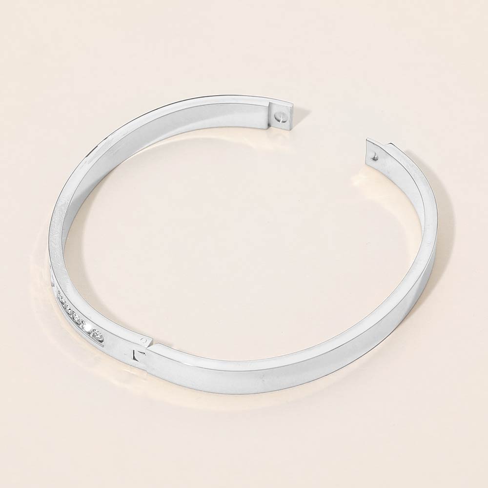 • Sleek hinged bangle bracelet featuring refined cz accents and subtle geometric details. Designed for effortless styling, this modern bracelet adds polished elegance to everyday outfits or special occasions. Perfect for stacking or wearing solo for a clean, sophisticated look.